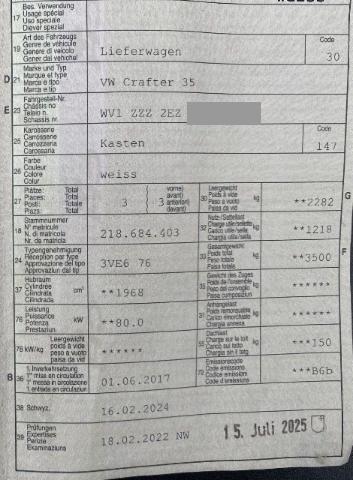 VW Crafter 35 Kaw. 3665 2.0 TDI 109