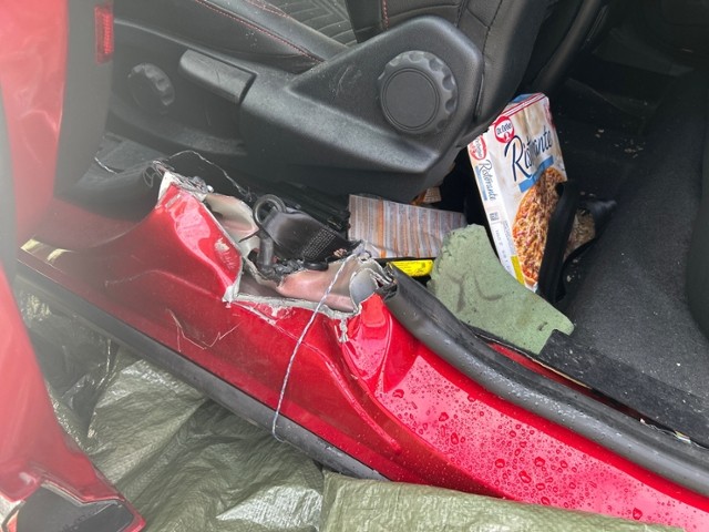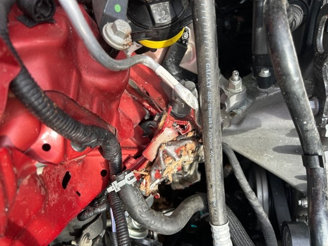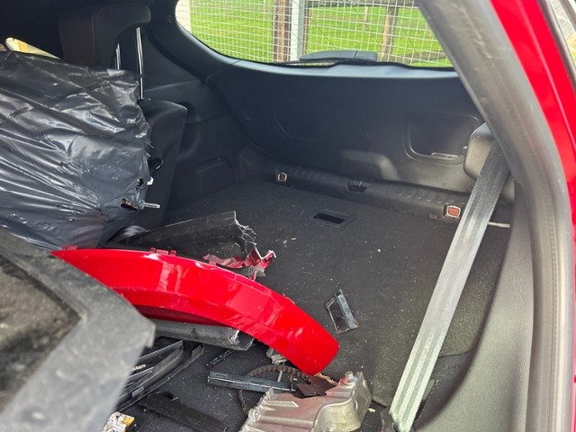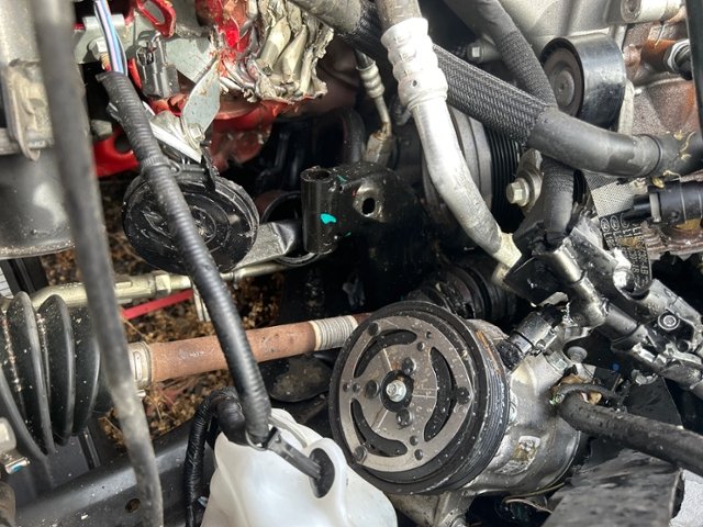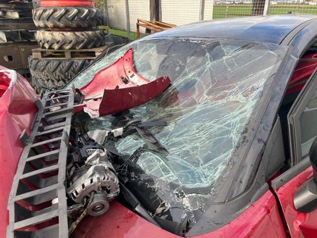 Motor ist abgerissen. Motorhalterungen sind gerissen. Getriebe ist abgerissen und zerstört. Motoranbauteile beschädigt. Alle Kühler vorne sind eingedrückt.