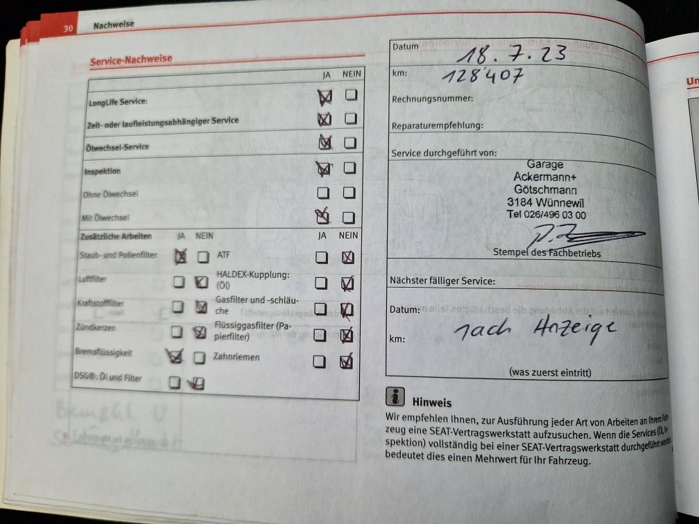 Fahrzeug wurde regelmässig in Service gegeben (siehe Fotos) und hat keine offensichtlichen Mängel. Einige Beulen und Kratzer rund ums Fahrzeug (auch auf Fotos). Verkauf ohne Garantie ab Platz. Wandelung und Minderung werden soweit gesetzlich möglich wegbedungen.