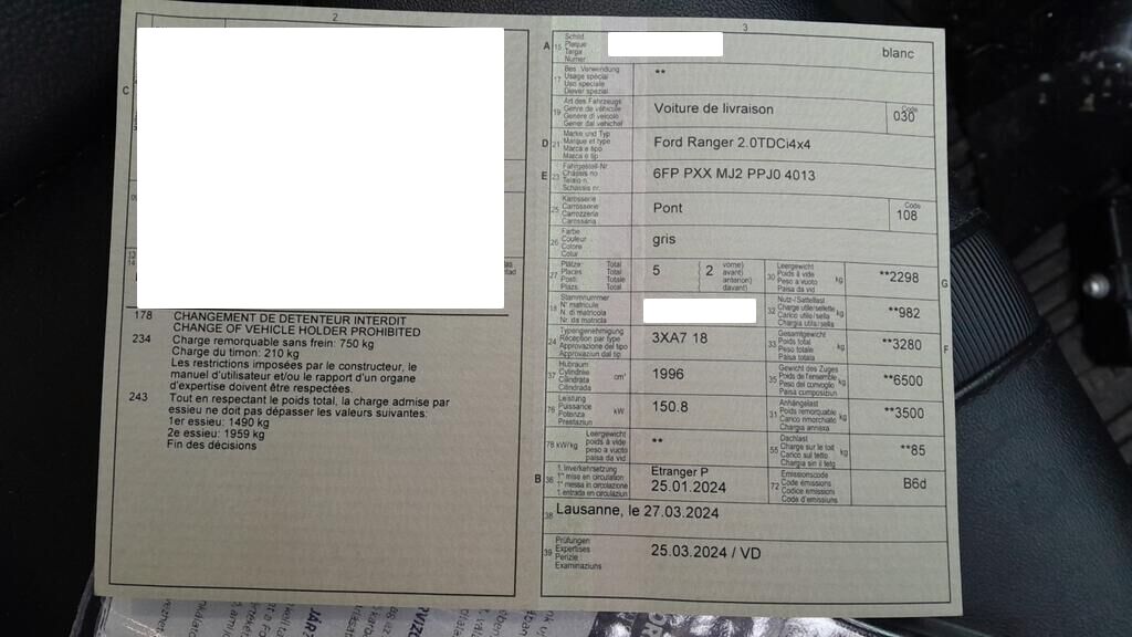 Pare-chocs AV + phare G Aile AV G + jante AV Porte AV G + AR G et marche pied Montant de toit et toit + barre G Pare-brise Côté de cabine G Côté de benne G + jante AR G et feu G Moteur démarre mal, tourne mais irrégulier. Autres dommages voir photos, réserve non-démontage et sur fonctionnement général. Pas de documents, 1 seule clé. Motor Getriebe Vorderachse Hinterachse Airbags ausgelöst: 0 unbekannt ( Abfallcode 16.01.04ak )
