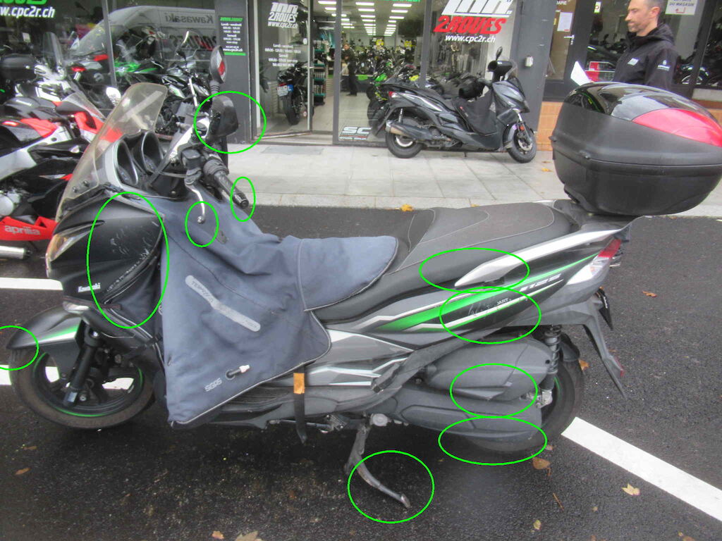 2 cas casco : Choc à l'arrière droit et chute côté gauche : Voir photos Chute côté droit : Voir photos Motor Getriebe Vorderachse Hinterachse Airbags ausgelöst: 0 unbekannt ( Abfallcode 16.01.04ak )