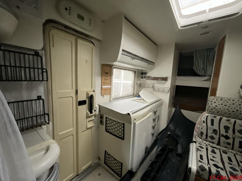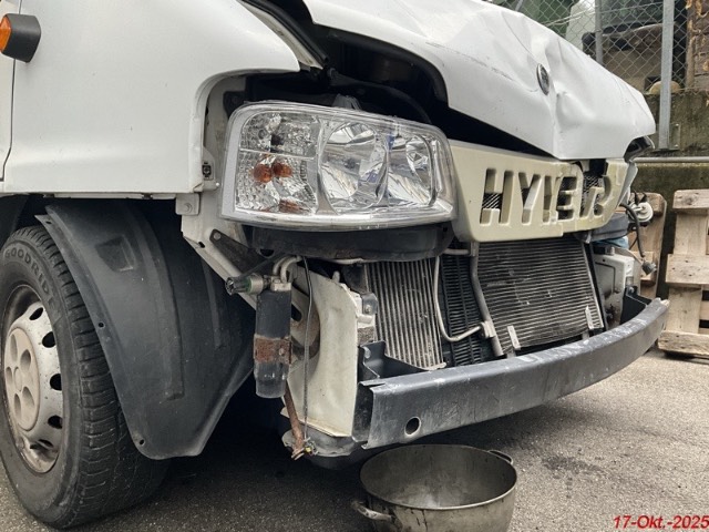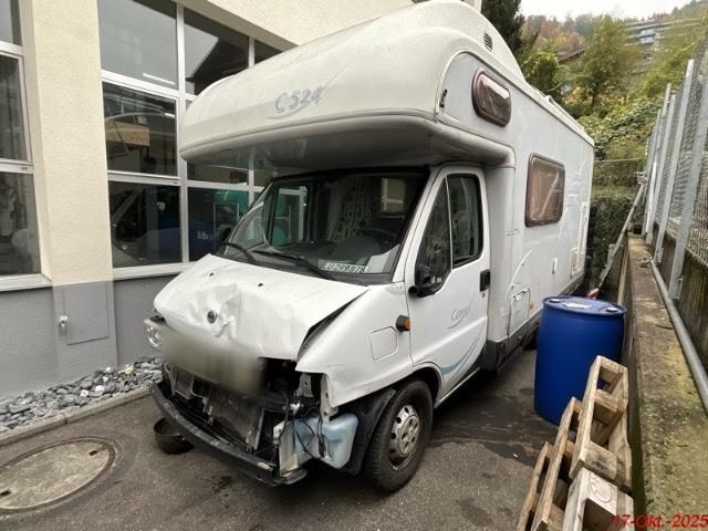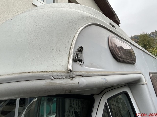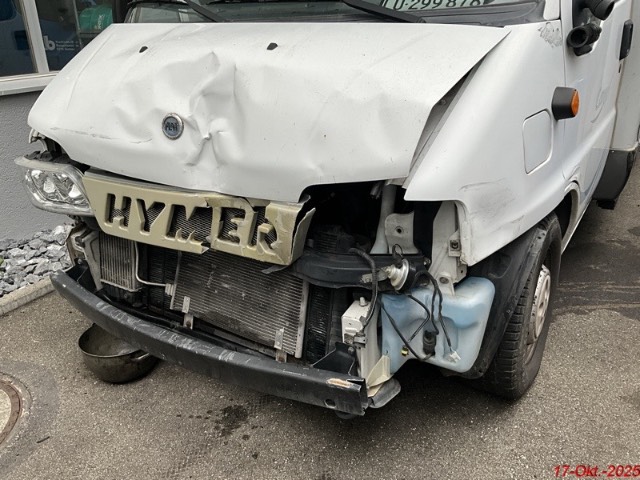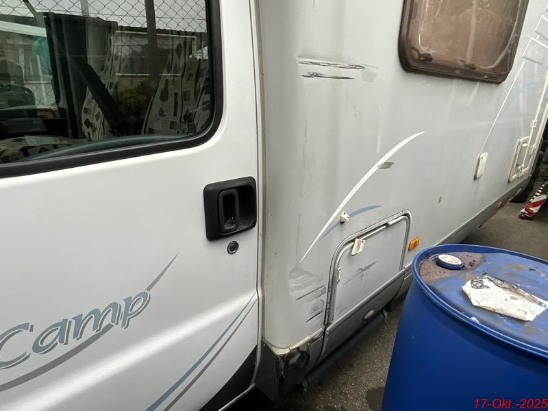 Beschreibung der Schäden: Die Kotflügel, die Motorhaube, der Frontträger, die Seitentüre links, das Kniestück links sind deformiert. Die Scheinwerfer, die Stossstange vorne sind gerissen. Aufbau: Die Alkove links, das Käder, die Seitenwand links vorne, der Klappendeckel, die Seitenscheibe links sind deformiert mit Kratzer.
