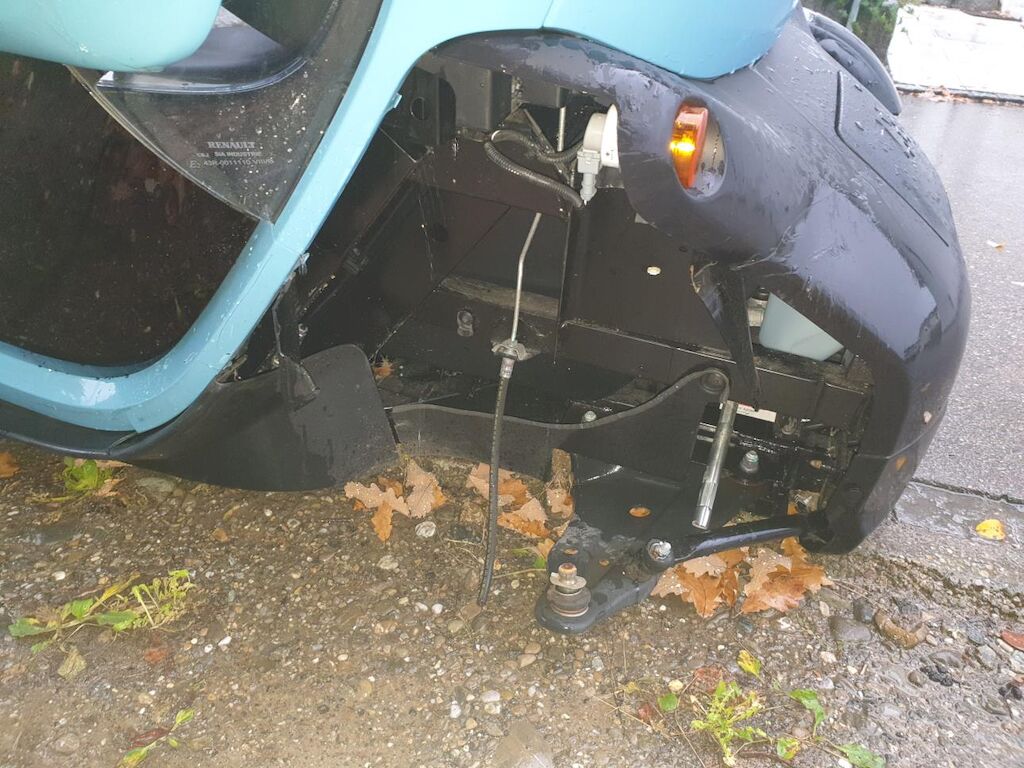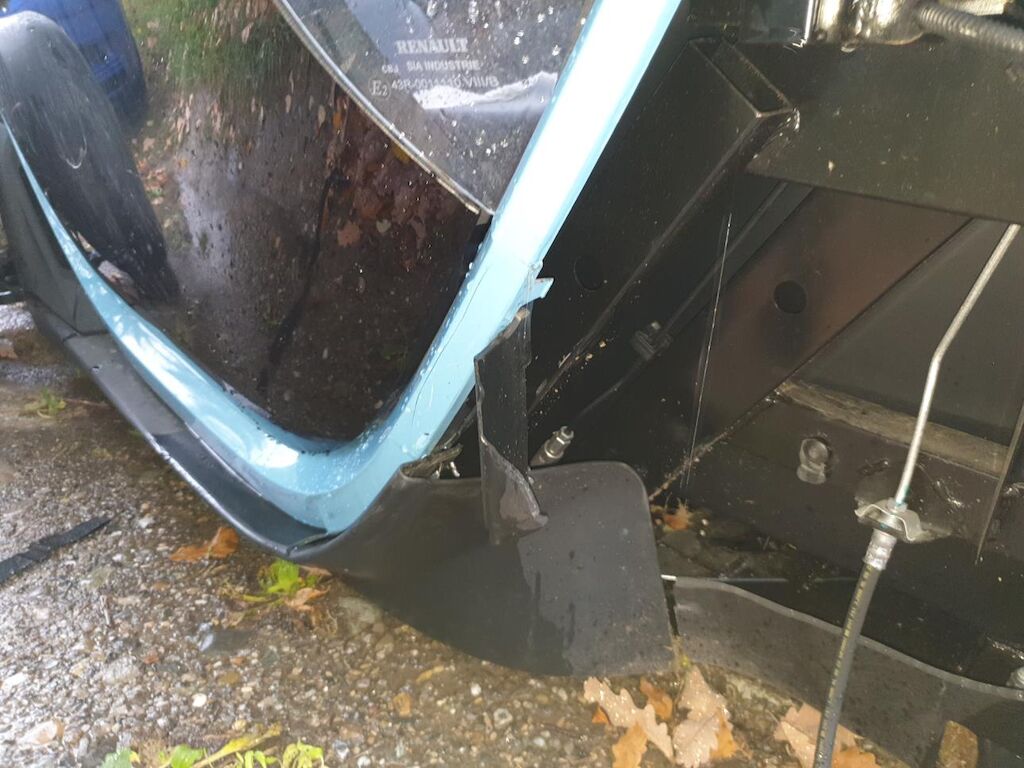 Seitenschaden rechts: Vorderachse, Hinterachse Tür mit Anbauteilen und Schweller rechts beschädigt. Risiko Rahmen und Hinterachsträger. Weitere Beschädigungen am Unterboden möglich. Batterie entladen. Motor Getriebe Vorderachse Hinterachse Airbags ausgelöst: 0 unbekannt ( Abfallcode 16.01.04ak )