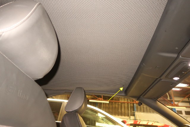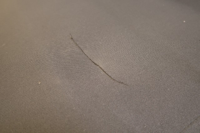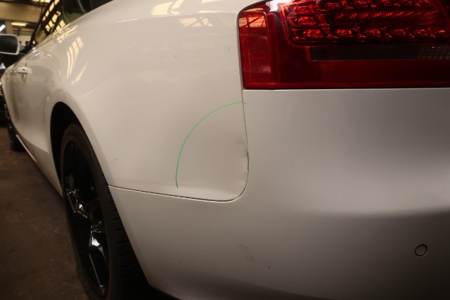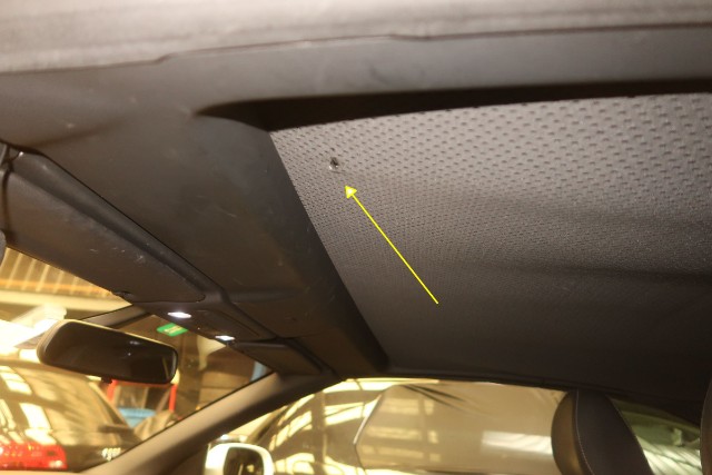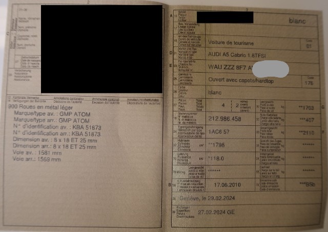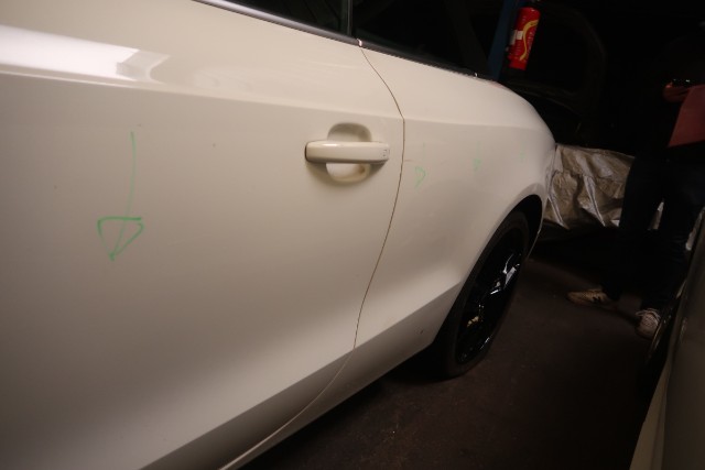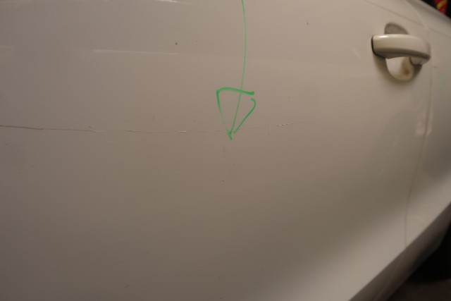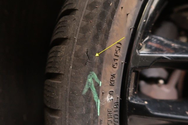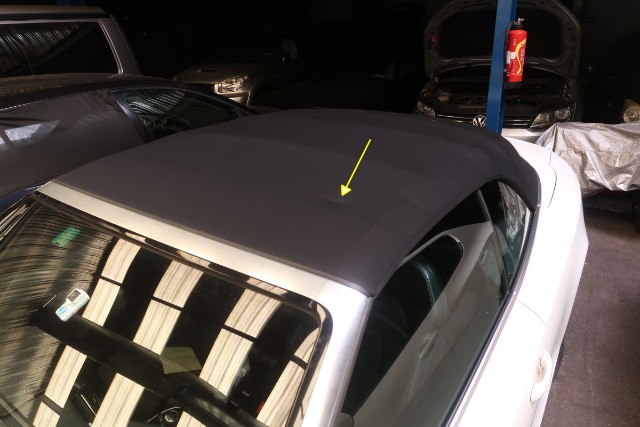 Verdeckstoff zerrissen, linker Vorderreifen und linker Hinterreifen durchstoßen. Kratzer an der linken Seite.