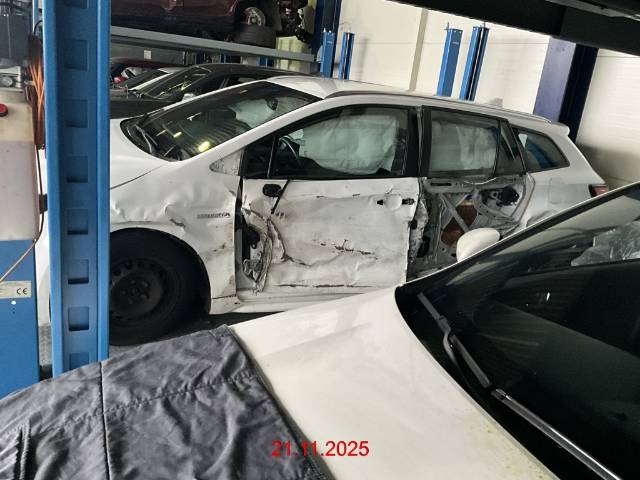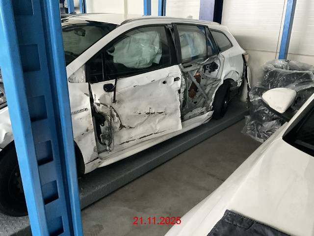 Seite links : Ganze Seite eingedrückt, A- und B-Säule eingedrückt, Stossfänger hinten gerissen, Stossfänger vorne gerissen, Scheinwerferhalterung abgerissen, Aufhängung hinten verformt, Knie- + Kopf-Airbag ausgelöst, Gurtstraffer ausgelöst. Risiko: Radaufhängung vorne - AUFZÄHLUNG NICHT ABSCHLIESSEND / Vorbestandene Schäden: Gebrauchsspuren