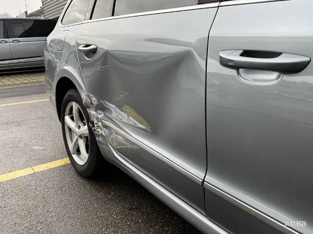 Beschreibung der Schäden: Schaden: Tür HR stark eingedrückt, Seitenwand R eingedrückt/aufgeschlitzt AUFZÄHLUNG NICHT ABSCHLIESSEND Vorschaden: St.St.VL zerkratzt, Tür HL Delle+Kratzer, Seitenwand L zerkratzt, St.St.HR eingedrückt/zerkratzt