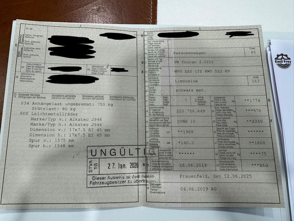 Keine Gewähr auf die Angaben der Sonder- und Serienausstattung / keine mechanische Prüfung. Fahrzeug wurde unzerlegt expertisiert / keine Haftung für allfällige, nach Demontage bekanntwerdenden Mängel. Fahrzeugbereifung und Ausstattung gemäss Fotos / Fahrzeugkauf auf eigenes Risiko ab Platz ohne Nachwährschaft.- Letzter Service am 17.11.2023 bei 101520km