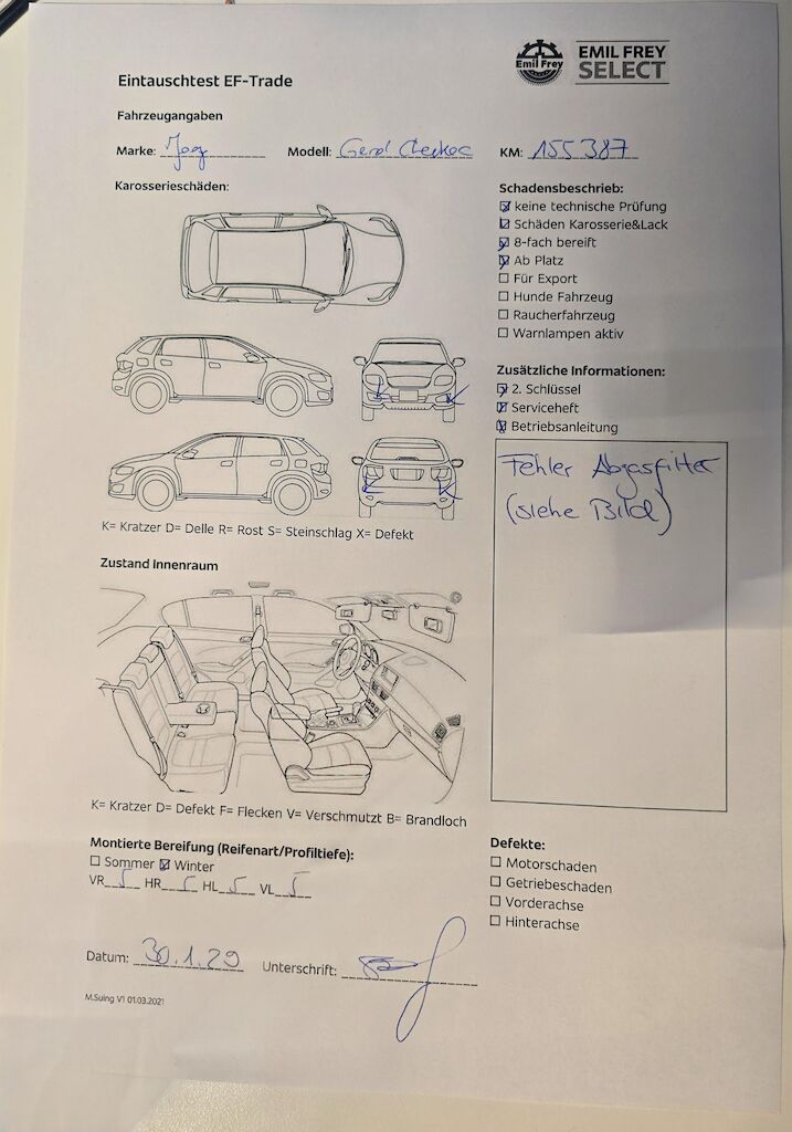 Keine technische Prüfung (Werkstatttest) vorgenommen Diverse Schäden an Karosserie/Lack. 8-fach bereift. Fahrzeug ab Platz, ohne Garantie und Aufbereitung. Fehler Abgasfilter (siehe Bild) Motor Getriebe Vorderachse Hinterachse Airbags ausgelöst: 0 unbekannt ( Abfallcode 16.01.04ak )