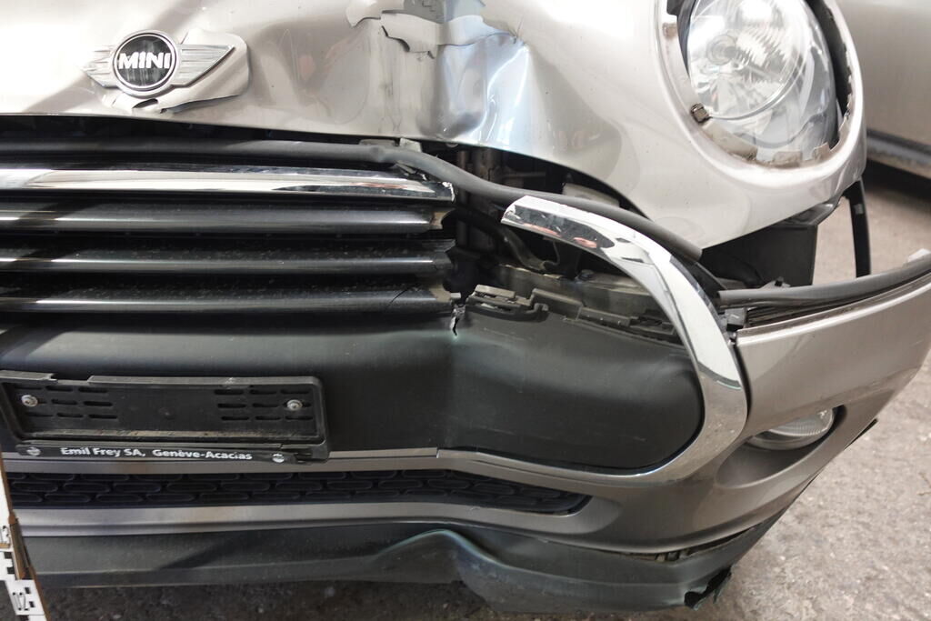 Choc avant: Pare-chocs et moulure, spoiler, calandre, renfort, absorbeur, capot, radiateurs, intercooler, condenseur, masque, ventilateur moteur, conduits admission air; endommagés. Protection piétons déclenché. Motor Getriebe Vorderachse Hinterachse Airbags ausgelöst: 0 unbekannt ( Abfallcode 16.01.04ak )
