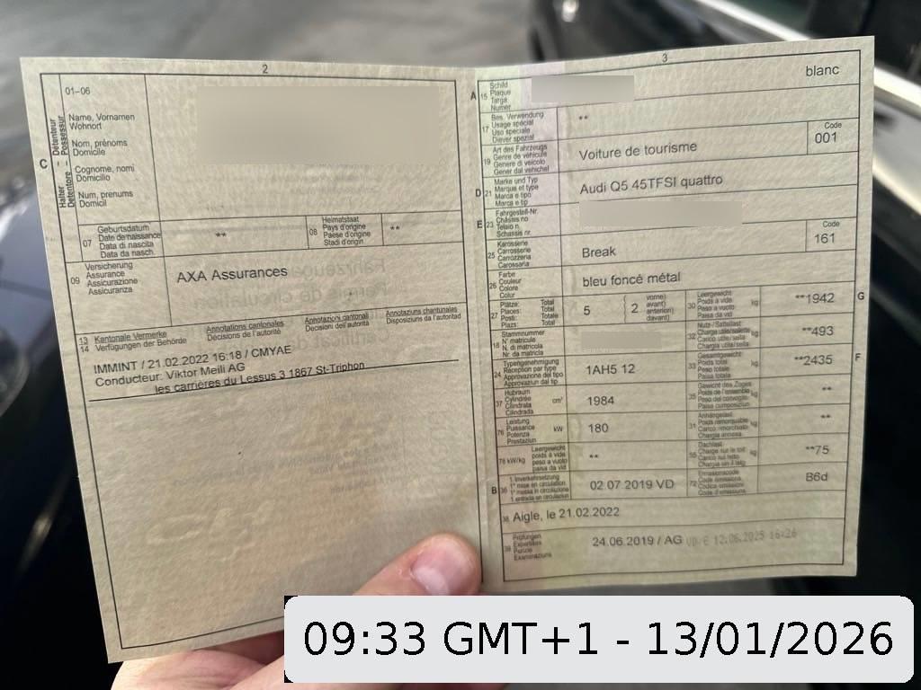 Elektrische Fensterheber vorne + hinten, Licht: Tagfahrlicht, Scheibenwischer vorne mit Intervall, Sequentielles 7-Gang-Getriebe mit Automatikfunktion, Elektronische Parkbremse, Zentralverriegelung mit Fernbedienung, USB-Schnittstelle und Multimediabuchse AUX-IN, Servotronic, Klima: Klimatisierungsautomatik, Notrufsystem, Warndreieck, Heckscheibenheizung, Elektronische Differentialsperre (EDS), Leseleuchten, Tempomat, Digital Uhr, Allradantrieb permanent, Leichtmetallräder im 10-Speichen-Design 17J, Wendeladeboden, Licht: Drittes Bremslicht, Garantie: 2 Jahre ohne Kilometerbegrenzung (ab 1. Inv.), Veloursfussmatten vorne und hinten, Antriebsschlupfregelung (ASR), Dachträger, Einstiegsleisten Carbon Camouflage matt, Aussentemperaturanzeige, Fahrer-Informationssystem, Media: MMI Radio plus, Ablagen in den Türen, Aussenspiegel rechts und links beheizt, elektrisch verstell- / und einklappbar, Lichtsensor, Räder: Reifenreparatur-Set (Tire Fit), Rücksitzbank ungeteilt,Lehne geteilt umlegbar (dreiteilig) mit Mittelarmlehne, Sitze: Vordersitze heizbar, Radschrauben mit Diebstahlsicherung, Elektrische Kindersicherung, Drehzahlmesser, Licht: LED Heckleuchten, Dekoreinlagen in Aluminium, Elektronisches Stabilitäts-Programm (ESP), Audi drive select, Mittelarmlehne vorn in Kunstleder schwarz mit Kontrastnaht in Rot, Aschenbecher und Zigarettenanzünder, Lenkrad: Leder-Multifunktionslenkrad im 3-Speichen-Design, Modellbezeichnungen (Logo & Model), Lenkrad: Lenkrad längs- und höhenverstellbar, Dachhimmel, Wegfahrsperre elektronisch, Kofferraummatte, Räder: Reifendruck-Kontrollanzeige, Wartungsintervall-Anzeige, Alu-Räder 8Jx18 5-Arm-Stern-Design, Gepäcktrennnetz, Kindersitzvorrichtung ISOFIX mit Deaktivierungsschalter für Beifahrer- Airbag, Xenon-Hauptscheinwerfer, Fahrwerk: Dynamisches Fahrwerk, Media: 8 Lautsprecher, Klima: Pollenfilter (Staubfilter), Media: Digitaler Radioempfang (DAB), Polster: Stoff-Ausstattung, Licht: Nebelschlussleuchte, Assist: Bremsassistent (BAS), Verbandskasten, Antiblockiersystem (ABS), 3-Punkt-Sicherheitsgurte auf allen Plätzen, Radwechselwerkzeug, Katalysator geregelt, Wärmeschutzverglasung, Sitze: Sportsitze vorne, Stopp-/Start-System, Dachreling eloxiert, Gepäckraumklappe automatisch öffnend und schliessend, Paket: Glanzpaket, Regensensor für Scheibenwischer vorne, Aussenspiegel in Wagenfarbe, Innenleuchten LED, Höhenverstellbare Gurten vorne, Media: Bluetooth-Schnittstelle, Innenspiegel automatisch abblendbar, Akustikglas