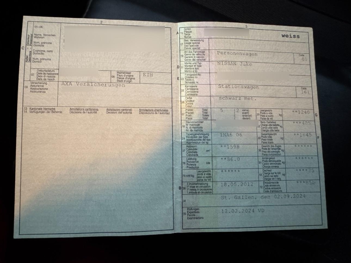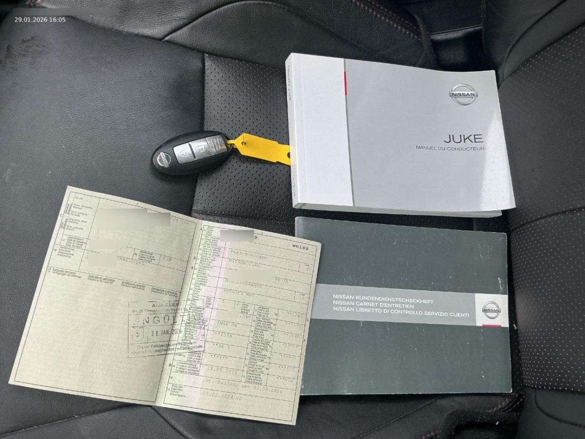 Aussenspiegel rechts und links beheizt, elektrisch verstell- / und einklappbar, Cupholder vorne, Elektronisches Stabilitäts-Programm (ESP), Window-Kopfairbags, Drittes Bremslicht, Friendly Lighting, Scheibenwischer vorne mit Intervall, ABS, EBD elektronische Bremskraftverteilung, Gurtstraffer vorne, Kartentaschen an den Rückenlehnen, Sitze: Fahrersitz höhenverstellbar, Gurtwarneinrichtung für Fahrer- und Beifahrersitz, Media: Bluetooth-Schnittstelle für Mobiltelefon, 5-Gang-Getriebe, Seitenairbags, Katalysator geregelt, Sitzbezüge Stoff Premium, Lenkrad und Schalthebelgriff in Leder, Heckklappe mit Scheibenwischer, Heckscheibenheizung, Servolenkung geschwindigkeitsabhängig, Airbag: Airbag Beifahrer deaktivierbar, 3-Punkt-Sicherheitsgurte auf allen Plätzen, Türinnengriffe silberfarben, Nebelscheinwerfer, Leseleuchten vorne, Assist: Regensensor für Scheibenwischer vorne, Sicherheitslenksäule, Bremsassistent (BAS), Kopfstützen vorne höhenverstellbar, Licht: Fahrlichtautomatik, Start-/Stop-Knopf, Laderaumabdeckung, Nebelschlussleuchte, Media: AUX-Anschluss, Assist: Tempomat mit Geschwindigkeitsbegrenzer, Auspuffblende, verchromt, Mittelkonsole und Designelemente in Metallic-Lackierung wahlweise Grau oder Rot, Nissan Dynamic Control System, Abgedunkelte Seiten- und Heckscheibe, Rücksitzlehne geteilt abklappbar, Pollenfilter (Staubfilter), Ablagen in den Türen, Leichtmetallräder Sport 17J, Kindersicherung im Fahrgastraum, Kofferraumbeleuchtung, Airbag: Airbag Fahrer und Beifahrer, Brillenablage, USB-Anschluss, Lichtwarnsummer, Handschuhfach, Gurtstraffer mit Gurtkraftbegrenzer, Lenkrad höhenverstellbar, Stossstangen, Aussenspiegel und Türgriff in Wagenfarbe, ISOFIX Kindersitzvorrichtung, 12-Volt-Steckdose vorne, Elektrische Fensterheber vorne + hinten, Höhenverstellbare Gurten vorne, Räder: Reifenreparatur-Set (Tire Fit), Bordcomputer, Aussentemperaturanzeige, INTELLIGENT KEY, Zentralverriegelung mit Fernbedienung, Innenspiegel abblendbar, Radiovorbereitung, Antenne, Entstörung und 6 LS, Klimatisierungsautomatik, 3 Kopfstützen hinten, Lackierung: Uni-Lackierung, NISSAN Connect: 2-DIN Navigationseinheit m. 5'' Touchscreen, Bluetooth, Radio-CD mit MP3, USB und iPod-Anschl., Wegfahrsperre elektronisch