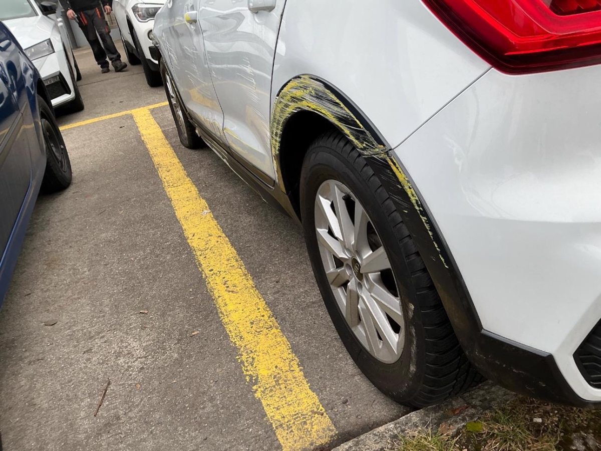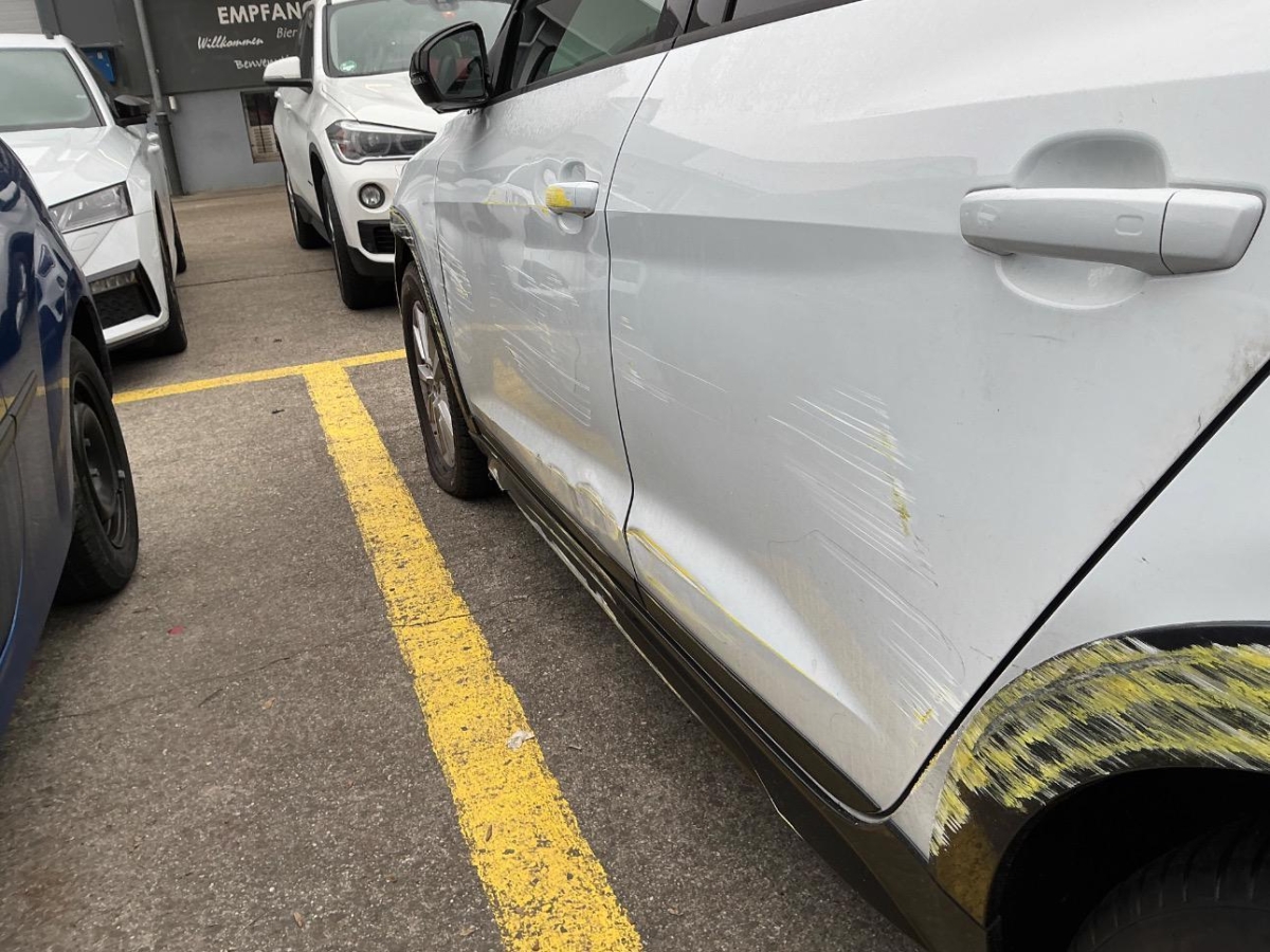 Das Fahrzeug hat rundum kleine Dellen, Beulen und Lackschäden