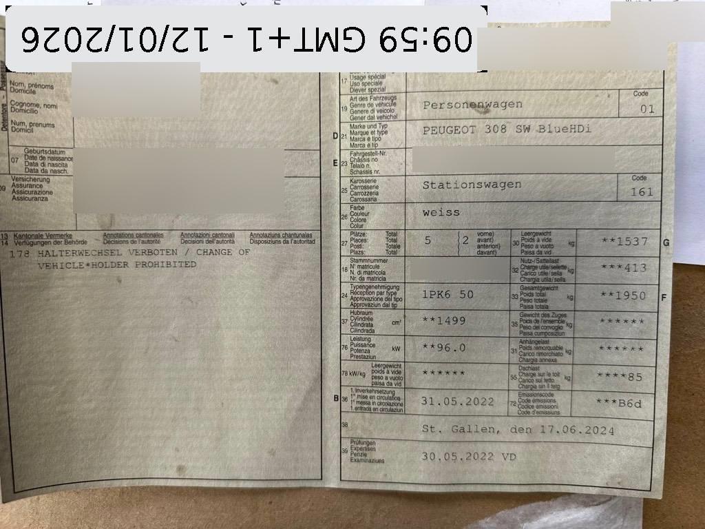 Licht: Nebelschlussleuchte, Getriebe: 8-Stufen-Automat sequentiell, Drehzahlmesser, Airbag: Fahrer und Beifahrer, Peugeot i-Cockpit mit hochauflösendem 10"-Bildschirm, Airbag: Airbag Beifahrer deaktivierbar, Sitze: Fahrersitz höhenverstellbar, Klima: 2-Zonen-Klimaautomatik, Bordcomputer, Kopfstützen vorne höhenverstellbar, Aussenspiegelkappen in Perla Nera Schwarz, Sitze: Lendenwirbelstütze manuell auf der Fahrerseite, Partikelfilter und Oxydationskatalysator, Kopfstützen hinten, Wegfahrsperre elektronisch, Antiblockiersystem (ABS), Licht: EcoLED-Scheinwerfer mit LED-Tagfahrleuchten, Mittelarmlehne vorne, 3-Punkt-Sicherheitsgurte auf allen Plätzen, Sitze: Beifahrersitz höhenverstellbar, Assist: Müdigkeitserkennung, 12-Volt-Steckdose vorne, Servolenkung, ISOFIX-Befestigungspunkte für Kindersitz an den äusseren Rücksitzen, Räder: Reifenreparaturset, Elektrische Servolenkung, Dachhimmel klar, Aussenspiegel elektrisch verstell-, beheiz- und anklappbar mit Zugangsbeleuchtung, Räder: Reifendruck-Kontrollanzeige, Media: Multifunktionaler Touchscreen mit 10" HD Farbbildschirm, Elektronisches Stabilitäts-Programm (ESP) mit Antischlupfregelung (ASR), Lenkrad: Lenkrad in Höhe und Weite verstellbar, Höhenverstellbare Gurten vorne, Airbag: Seitenairbags vorn, Garantie: 3 Jahre oder 80'000 km - 2 Jahre Km unbegrenzt und im 3. Jahr bis 80’000 Km begrenzt - 12 Jahre Korrosionsschutzgarantie - 3 Jahre Lackgarantie - Garantie auf die Batterie für 8 Jahre / 160'000 Km, für 70% der Ladekapazität (e-208), Garantie: 12 Jahre Korrosionsschutzgarantie, Fensterheber vorn und hinten elektrisch mit Impulssteuerung und Einklemmschutz, Media: Mirror Screen-Funktion (Apple Carplay / Android Auto), Sitze: 40-20-40 Umklappbare Rücksitzbank, vom Kofferraum ausabnehmbar, Heckscheiben-Wisch-/Waschanlage, Festellbremse elektrisch, Polster: Stoff-Ausstattung, Zentralverriegelung mit Fernbedienung, Heckscheibenheizung, Licht: Drittes Bremslicht, Licht- und Regensensor, Seitenscheiben in Reihe 2 stärker getönt, Gurtkraftbegrenzung vorne und auf den seitlichen Plätzen, Elektronisches Stabilitäts-Programm (ESP), Assist: Visuelle und akustische Einparkhilfe hinten, Lenkrad: Multifunktionslenkrad, Assist: Aktiver Spurhalte-Assistent, Assist: Adaptiver Geschwindigkeitsregler - mit Stoppfunktion (mit EAT8) - mit Funktion ACC 30 (mit Handschaltgetriebe), Assist: Ausparkassistent (Rear Cross Traffic Alert), Assist: Einparkhilfe vorne, Assist: Rückfahrkamera, Assist: Toterwinkelassistent, Dekor: Dekoreinlagen aus Stoff Texa für Türverkleidungen und Armaturenbrett, Heckschürze Schwarz glänzend mit Chromapplikationen, Innenspiegel automatisch abblendbar und rahmenlos, Keyless-System (schlüsselloses Zugangs- und Startsystem), Kühlergrill in Schwarz mit Chromapplikationen, LED-Ambientebeleuchtung am Armaturenbrett und an der Türverkleidung, einstellbar in 8 Farben, Licht: Fernlichtassistent, Luftqualitätssystem, Make up-Spiegel beleuchtet für Beifahrer, Media: 2 USB-C-Anschlüsse hinten, Media: Navigationssystem mit PEUGEOT i-Toggles und Multifunktionaler Touchscreen mit 10" -HD -Farbbildschirm, Media: Sprachsteuerung OK PEUGEOT für Navigation, Telefon, Klimaanlage und Media, Paket: Paket Drive Assist + Rear warning, Polster: Stoff / Kunstleder Falgo in Schwarz mit Ziernähten in Grün, Räder: 17 -Zoll Leichtmetallfelgen Halong Zweifarbige, Sitze: Skiklappe (Reihe 2), Zierleisten in hochglänzendem Schwarz an den Seitenfenstern