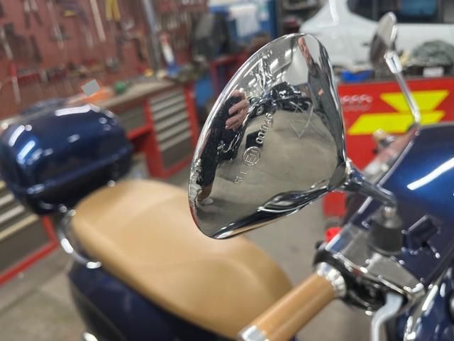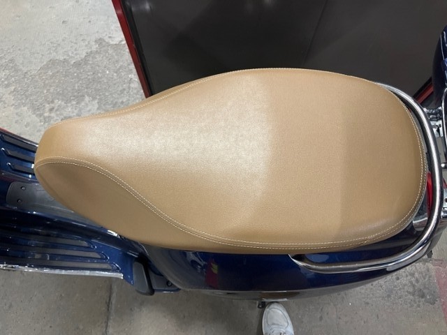 Top Case, Gepäckbrücke vorne chrom, Griffe Piaggio beige, Sitz beige (Blu energico & Verde amabile)