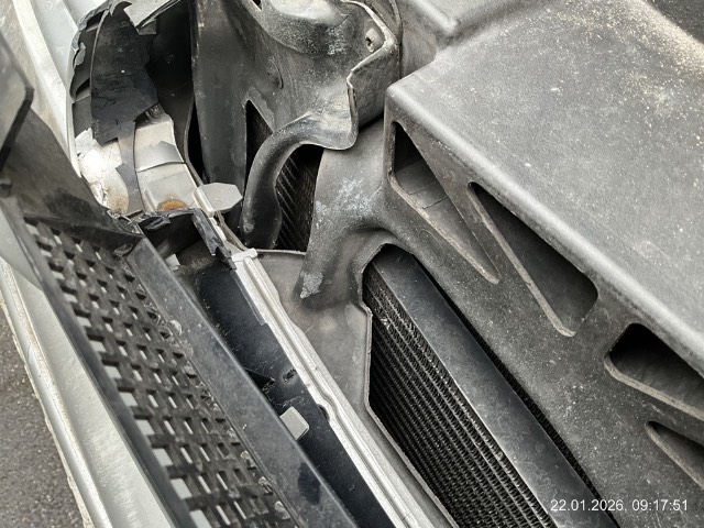 Frontschaden: Stossstange, Grill, Träger, Schlossträger und Kondensor vorne Mitte eingedrückt, Motorhaube gestaucht. Beide Scheinwerferhalter gerissen. / Fahrzeug noch in Betrieb. / Vorbestandene Schäden: Dachspoiler Lack gerissen