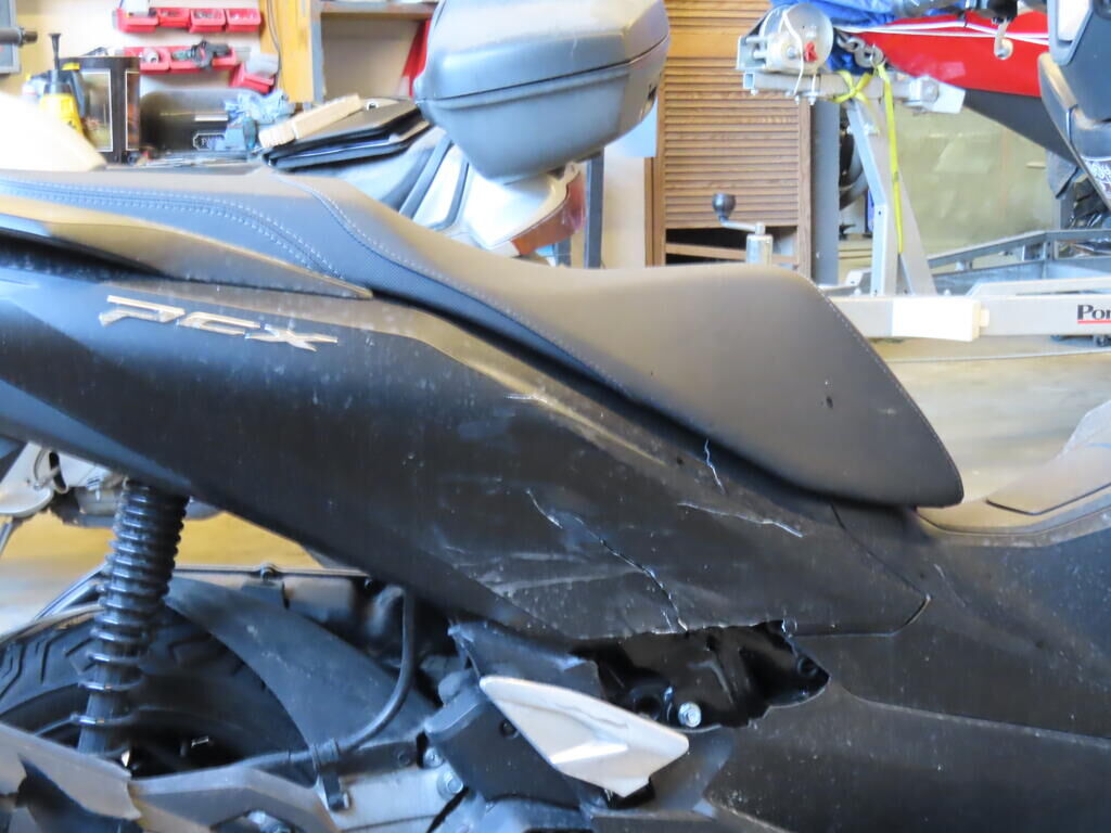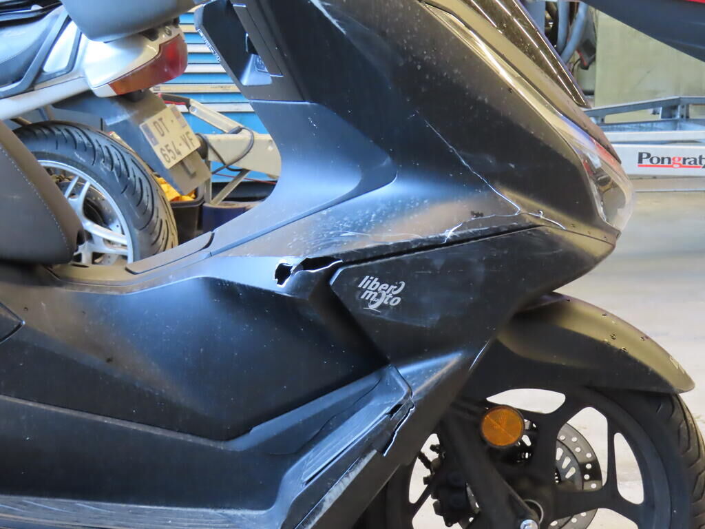 Carénages arrière et avant côté gauche et droit frottés et cassés. Silencieux enfoncé. Repose pied arrière droit frotté et enfoncé. Guidon déformé. Poignées et leviers de freins frottés. Motor Getriebe Vorderachse Hinterachse Airbags ausgelöst: 0 unbekannt ( Abfallcode 16.01.04ak )