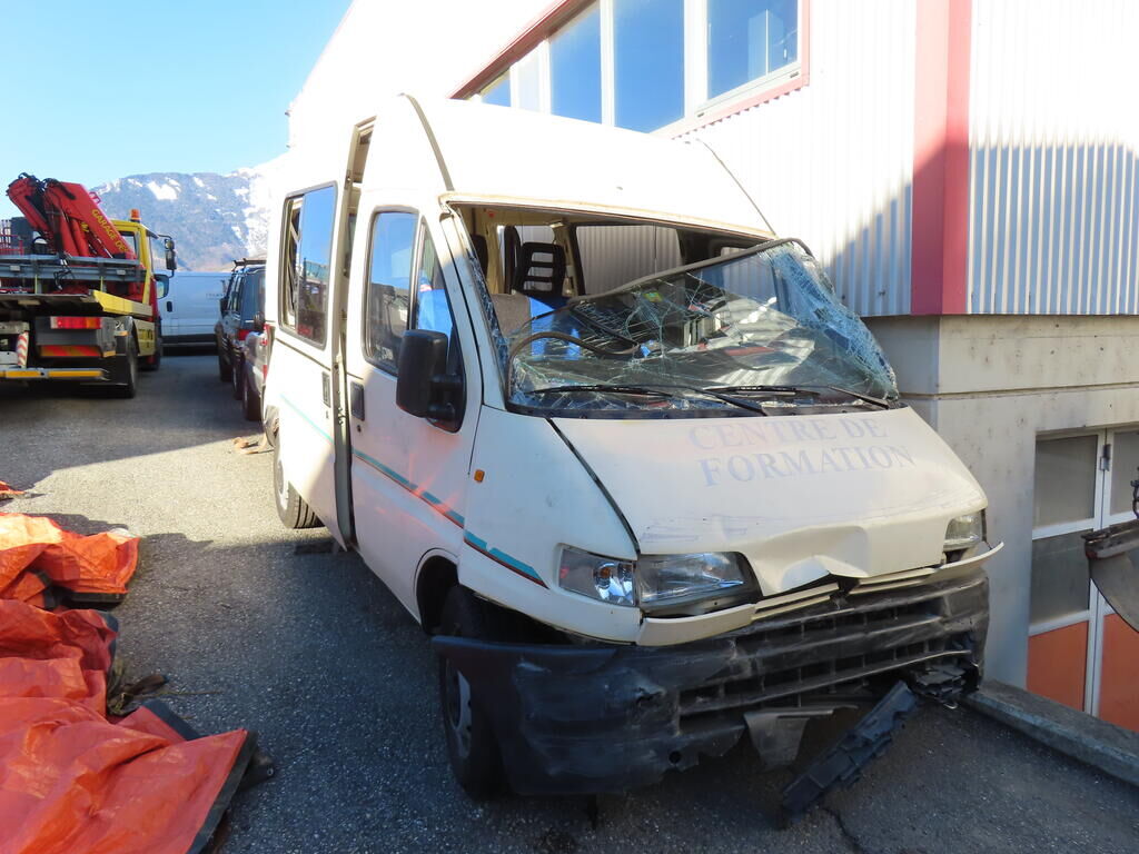 Bloc avant enfoncé Ailes portes et parois latérales gauche et droite enfoncée. Porte battantes arrière de chargement enfoncées. Renforts jupe et montants arrière enfoncés. Pavillon enfoncé. Eclairages cassés. Pare-brise et vitres latérales et portes brisées. Motor Getriebe Vorderachse Hinterachse Airbags ausgelöst: 0 unbekannt ( Abfallcode 16.01.04ak )