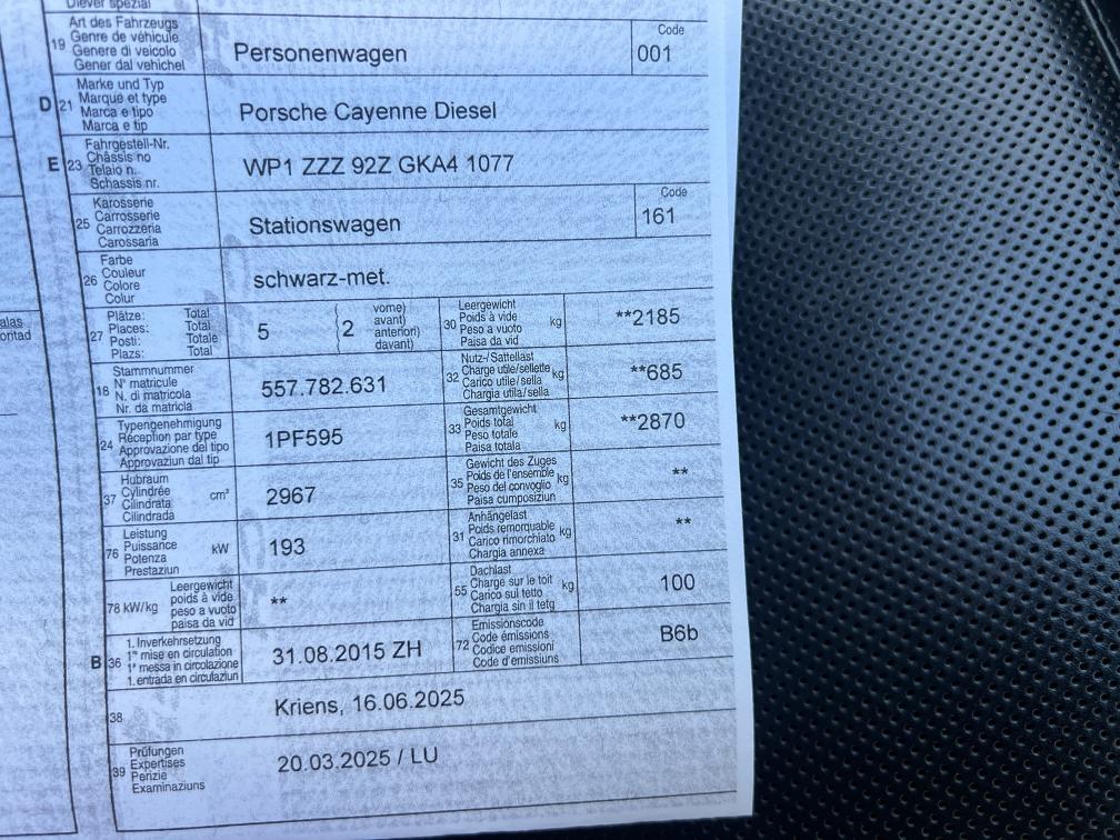 PORSCHE Cayenne Diesel MFK: 03.2025