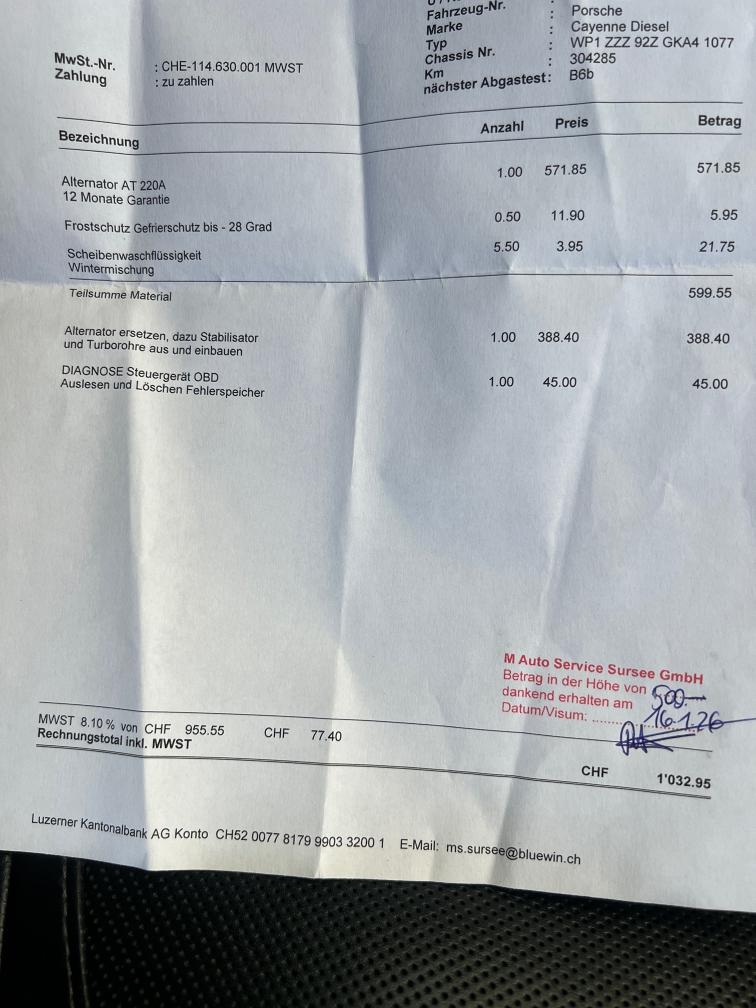 Für Fragen oder Besichtigungstermin: 079 957 74 59 G.Bullakaj / [email protected] Fahrzeug ab Platz ohne Garantie. Kann vor Ort besichtigt werden. (Video ebenfalls vorhanden) >Neuer Alternator: 01.2026 >Letzter Service: 09.2025 >Letzte MFK: 03.2025 >Starterbatterie ersetzt: 05.2025 >Neue Winterreifen: 11.2025 >Alter entsprechend noch sehr gepflegt! >Leichter Ölverlust >Glühlampenkerze leuchtet teilweise auf. Nach dem abstellen des Motors, läuft dann alles wieder Rund. >Fahrzeug ist fahrbar >Nur mit diesen Reifen und Felgen vorhanden gemäss Foto >Alle Schäden Innen und Aussen wie gemäss Fotos und Video.
