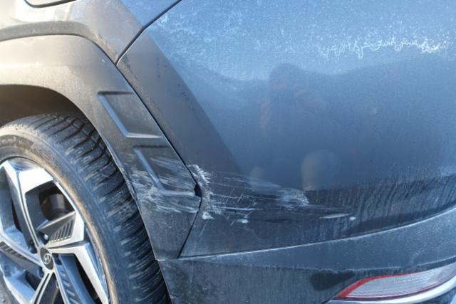 Aufhängungsteile vorne links beschädigt. Risiko Vorderachse. Risiko Hinterachse. Risiko Lenkung.