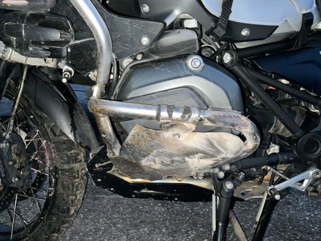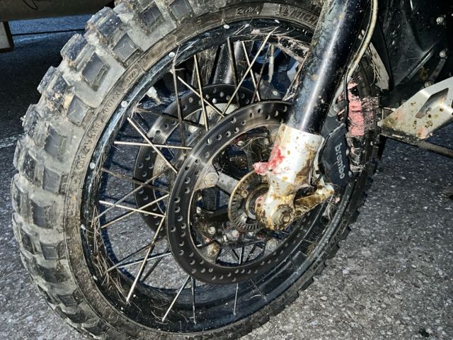Schutzblech vorne defekt. Gabel beschädigt. Lenker verbogen.