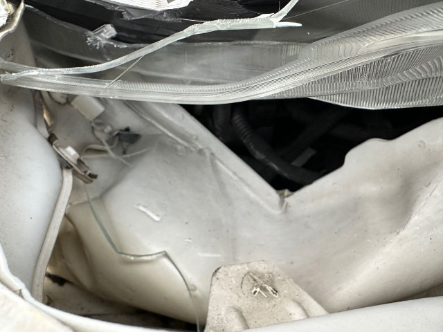 Fussgängerschutz ausgelöst. Front eingedrückt. Front links eingedrückt. Front rechts eingedrückt. Radhaus vorne links eingedrückt / gestaucht. Längsträger vorne rechts und links gestaucht. Fahrzeugvorbau verschoben.