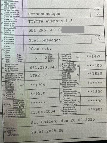 Airbag Fahrer und Beifahrerseite Elektronische Wegfahrsperre Radio/ Tonband/ CD Elektrische Fensterheber vorne + hinten Dachreling Seitenairbag Fahrer und Beifahrerseite Zentralverriegelung mit Fernbedienung Höhenverstellbarer Fahrersitz manuell Mittelarmlehne vorne Mittelarmlehne hinten Staub- und Pollenfilter Innenspiegel automatisch abblendbar Lenkrad verstellbar Kopfairbag vorne und hinten Kopfstützen vorne und hinten ABS und EBV Elektr. Bremskraftverteilung Lederlenkrad mit Lederschaltknauf Scheibenwischer mit Regensensor Sportsitze vorne Aussenspiegel elektrisch verstellbar/ heizbar und anklappbar Audiofernbedienung am Lenkrad Stabilitätskontrolle VSC + Traktionskontrolle TRC Nebelscheinwerfer vorne Servolenkung geschwindigkeitsabhängig Knieairbag Fahrer Isofix-Kindersitzbefestigung hinten Multi-Informationsdisplay/ Bordcomputer Klimaanlage automatisch Rücksitze geteilt um- und abklappbar 60:40 Keine Gewähr auf die Angaben der Serienausstattungen