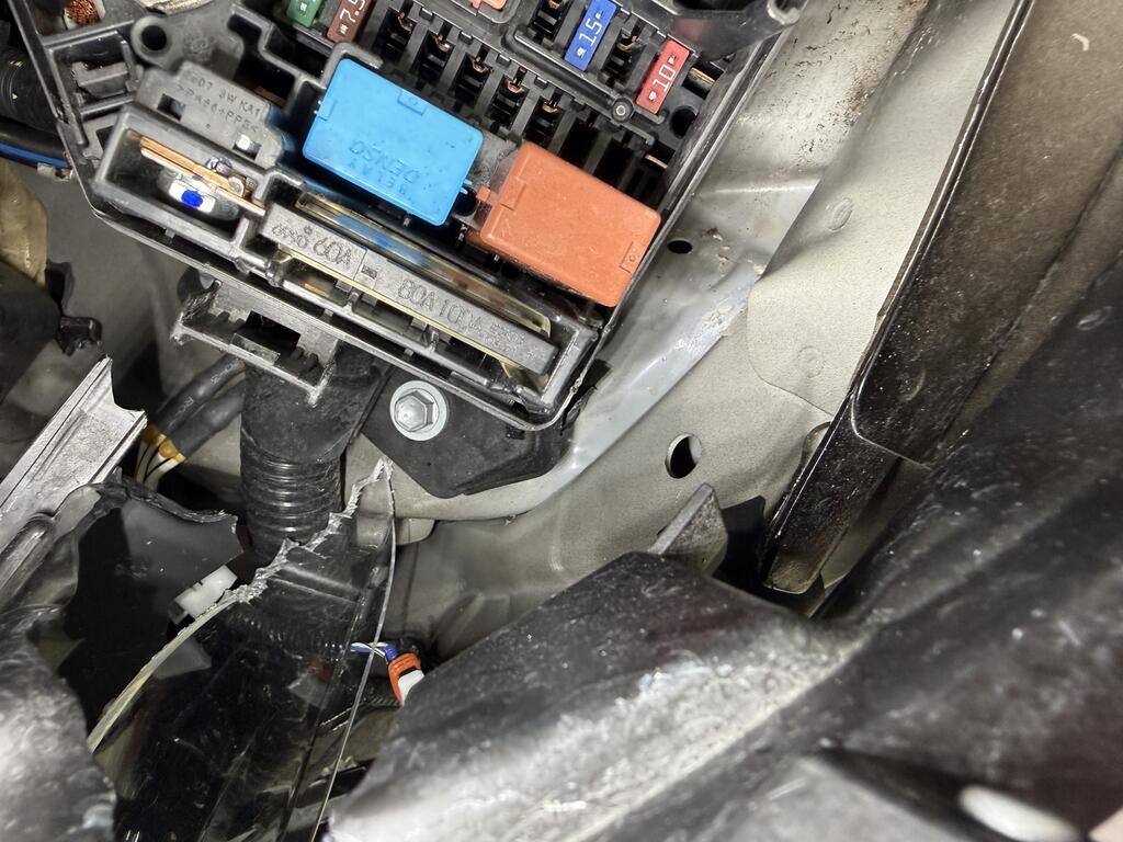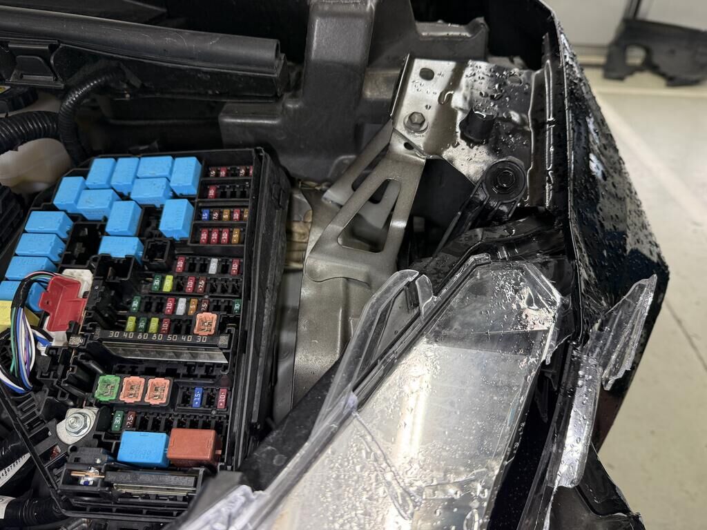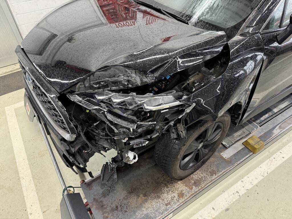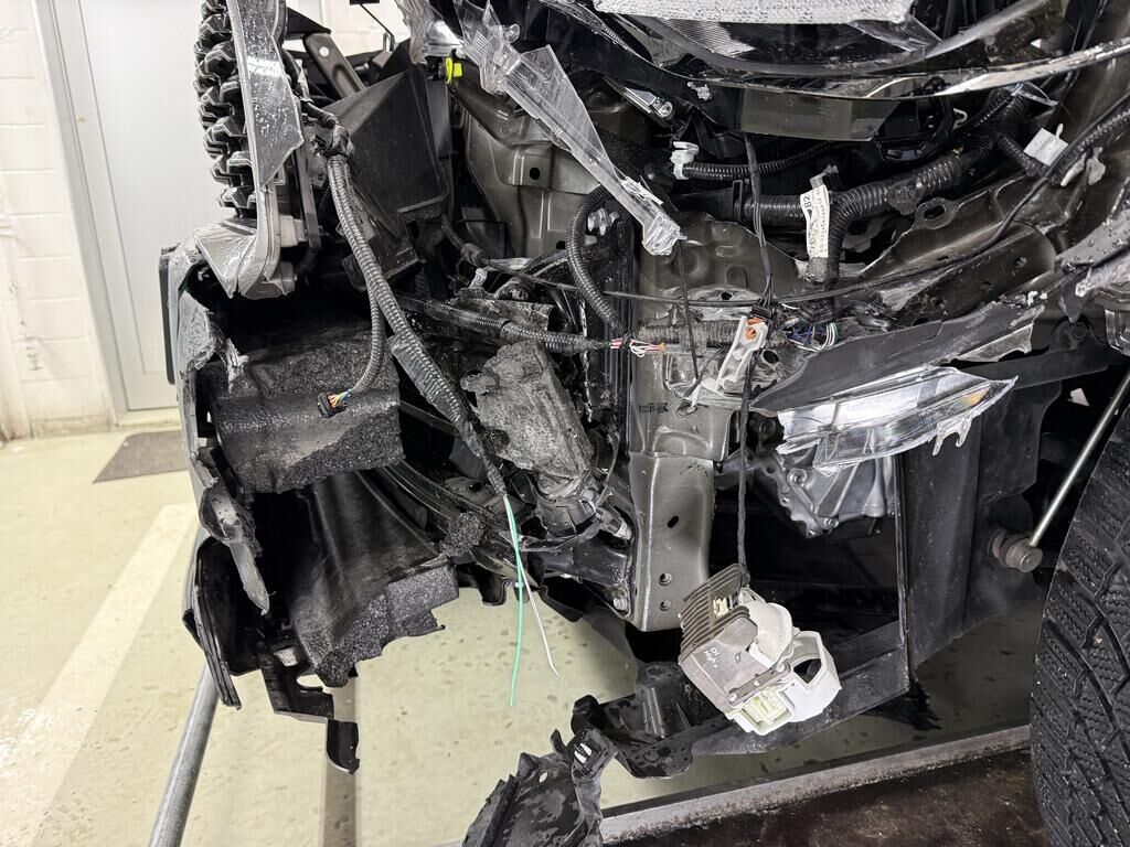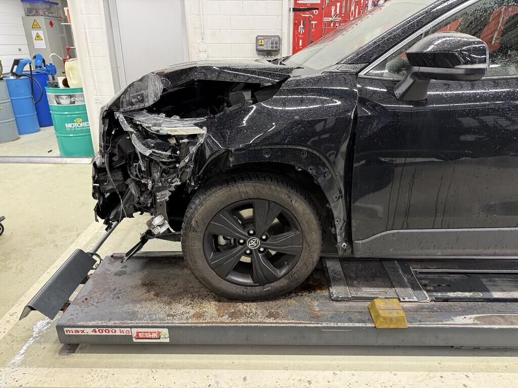 Anprall - Front links: - Scheinwerfer, Stossfänger inkl. Anbauteile gebrochen - Motorhaube und Kotflügel deformiert - Frontmaske, Radhaus und oberer Längsträger deformiert - Hauptlängsträger deformiert - Gesamte Front nach recht verschoben - Kühlerpaket beschädigt - Radaufhängung deformiert, Rad steht schräg und zu weit hinten, Antriebswelle rausgerissen - Vorderachsträger verschoben - Risiko: Getriebe! - Weitere Beschädigungen mögliche Motor Getriebe Vorderachse Hinterachse Airbags ausgelöst: 0 unbekannt ( Abfallcode 16.01.04ak )
