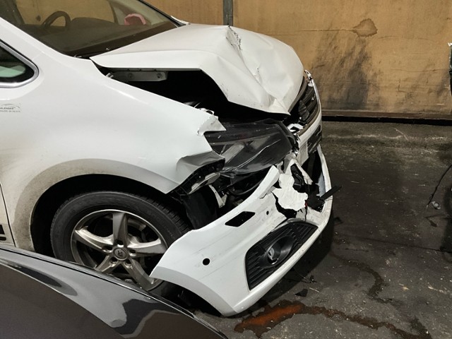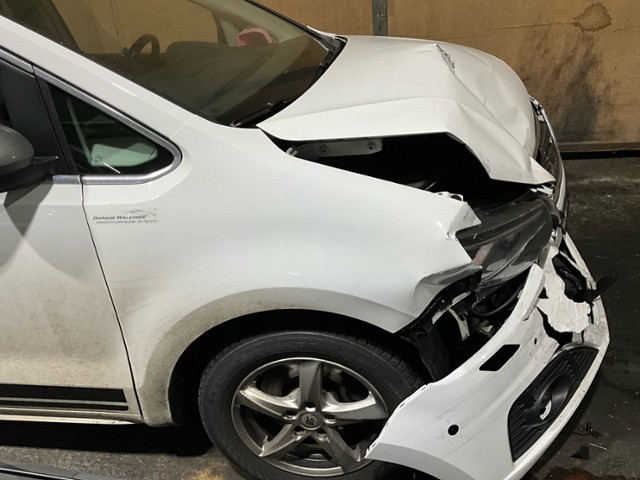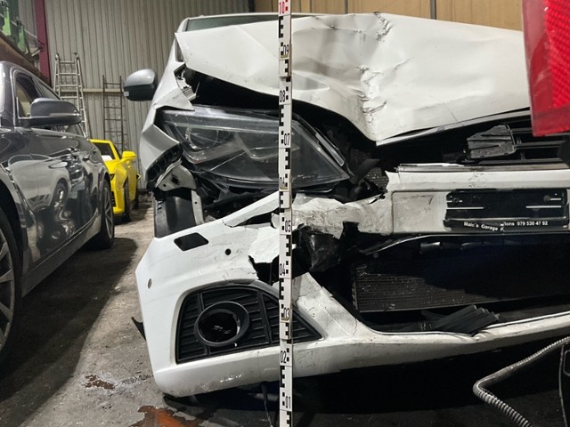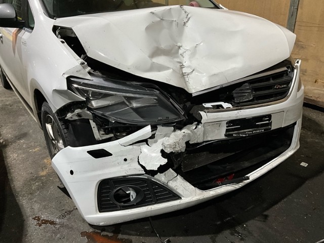 Front eingedrückt. Frontblech/Maskenblech eingedrückt. Längsträger vorne rechts gestaucht.