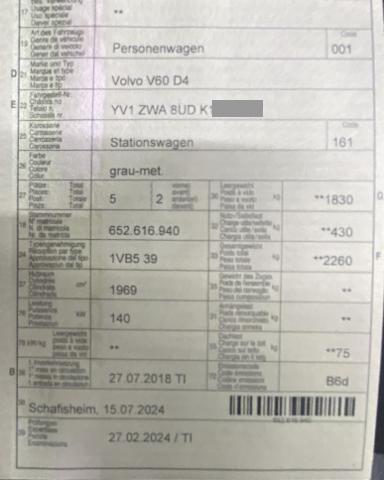 Airbag Fahrer und Beifahrerseite Elektrische Fensterheber vorne + hinten Aussenspiegel elektrisch verstellbar und heizbar Tempomat Zentralverriegelung mit Fernbedienung Lederlenkrad Innenspiegel automatisch abblendbar SIPS Kopf-/ Schulterairbag Regensensor ABS und EBV Elektr. Bremskraftverteilung Lederschalthebel Antibeschlagssensor Bremsassistent EBA Zwei Zonen-Klimaautomatik Isofix-Vorbereitung Rücksitze aussen Aussenspiegel elektrisch anklappbar inkl. Bodenleuchten IDIS Fahrerinformationssystem WHIPS Schleudertrauma-Schutzsystem Servolenkung geschwindigkeitsabhängig SIPS Seitenairbag Fahrer und Beifahrerseite Knieairbag Fahrer Dieselpartikelfilter Vordersitze höhenverstellbar Geschwindigkeitsbegrenzer Berganfahrhilfe Aktivkohlefilter mit automatischer Umluftschaltung Mittelarmlehne v mit Getränkehalter/ Staufach Einparkhilfe hinten DAC Driver Alert Conrol/ Assistenzsystem Leichtmetallräder 18" Vielspeichen Reifendruck-Sensoren TPMS Stop + Start System Spurhalteassistent LKA LED Tagfahrlicht Rücksitze umklappbar 60/40 Bluetooth Freisprecheinrichtung Komfortsitze mit Lederbezug Reifendichtmittel mit Kompressor Keine Gewähr auf die Angaben der Serienausstattungen Keyless Start Multifunktion für Lenkrad Digitale Instrumentierung Pack Innenraumbeleuchtung Lendenwirbelstützen elektr. für Vordersitze InfoTS Sensus Connect mit High Performance Sound VSP Volvo Swiss Premium Verkehrsschild-Erkennungssystem City Safety inkl. Kreuzungsbremsassistent Volvo On Call VOC inkl. WiFi Hotspot Drive-Mode LED-Scheinwerfer mit Fernlichtassistent Netztasche an Tunnelkonsole ESC Fahrdynamikregelung Beinauflagen und Lendenwirbelstütze elektrisch einstellbar Dekorausstattung Echtholz Drift Wood Dachreling Alu-Optik/ Chromapplikationen Seitenfenster