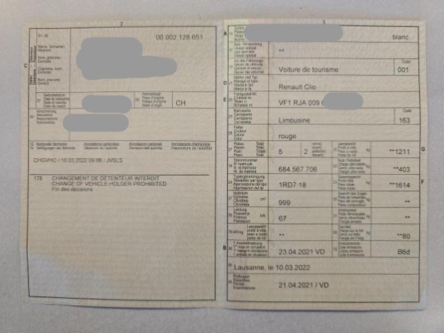 Fahrzeugdokumente vorhanden.