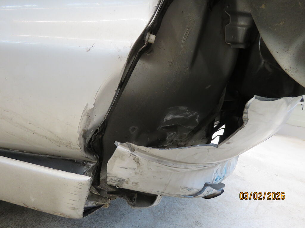 Heck -Heckklappen-Unterteil, Seitenwand-Unterteil, Stossfänger-Verstärkung, Heckblech deformiert -Stossfänger, Radlauf / Seitenwandabdeckung gebrochen Front: Stossfänger gerissen Motor Getriebe Vorderachse Hinterachse Airbags ausgelöst: 0 unbekannt ( Abfallcode 16.01.04ak )