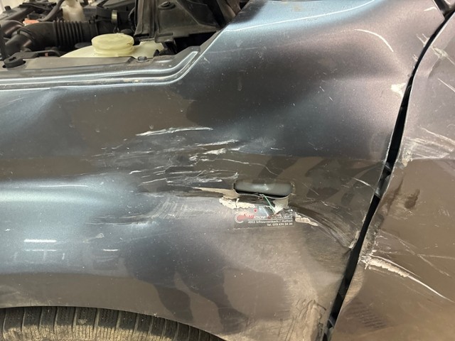 Front eingedrückt. Front links eingedrückt. Frontblech/Maskenblech eingedrückt. Radhaus vorne links eingedrückt / gestaucht.