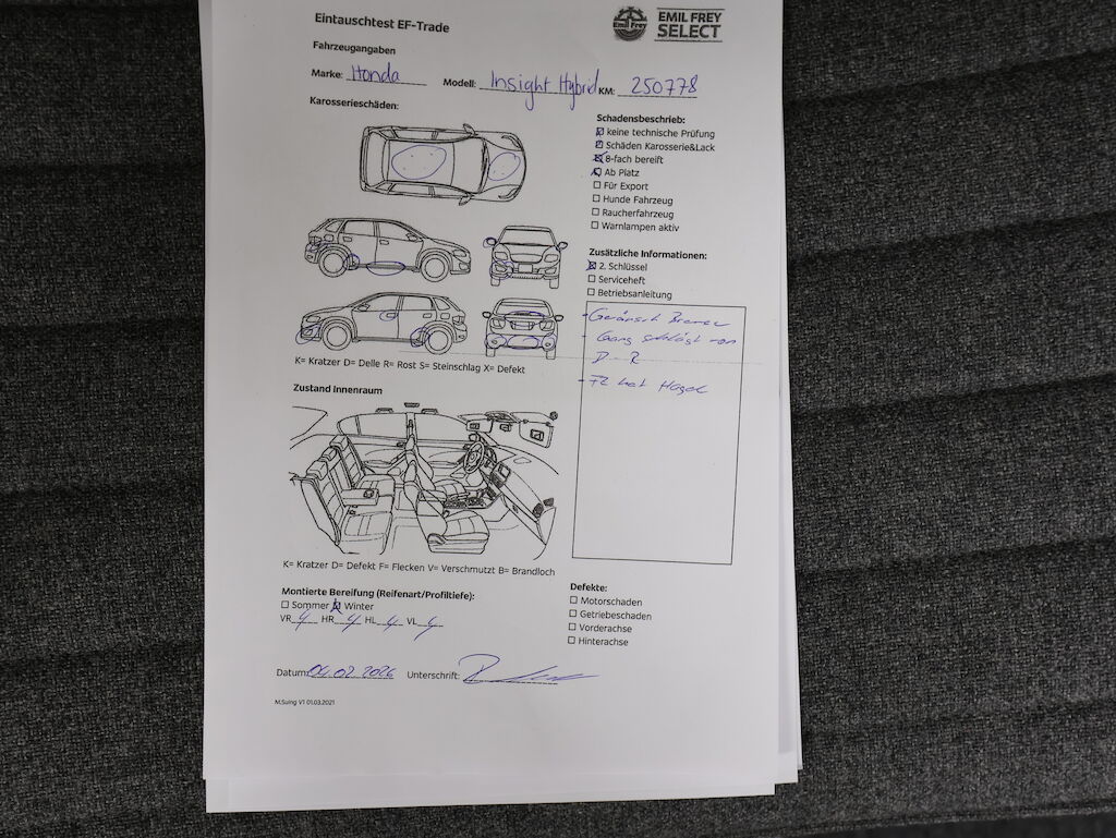 Keine technische Prüfung (Werkstatttest) vorgenommen. Geräusch beim Bremsen!! Ruckt bei Gang einlage von D-R. Kein Serviceheft vorhanden Diverse Schäden an Karosserie/Lack. Fahrzeug hat Hagel. 8-fach bereift. Fahrzeug ab Platz, ohne Garantie und Aufbereitung. Motor Getriebe Vorderachse Hinterachse Airbags ausgelöst: 0 unbekannt ( Abfallcode 16.01.04ak )