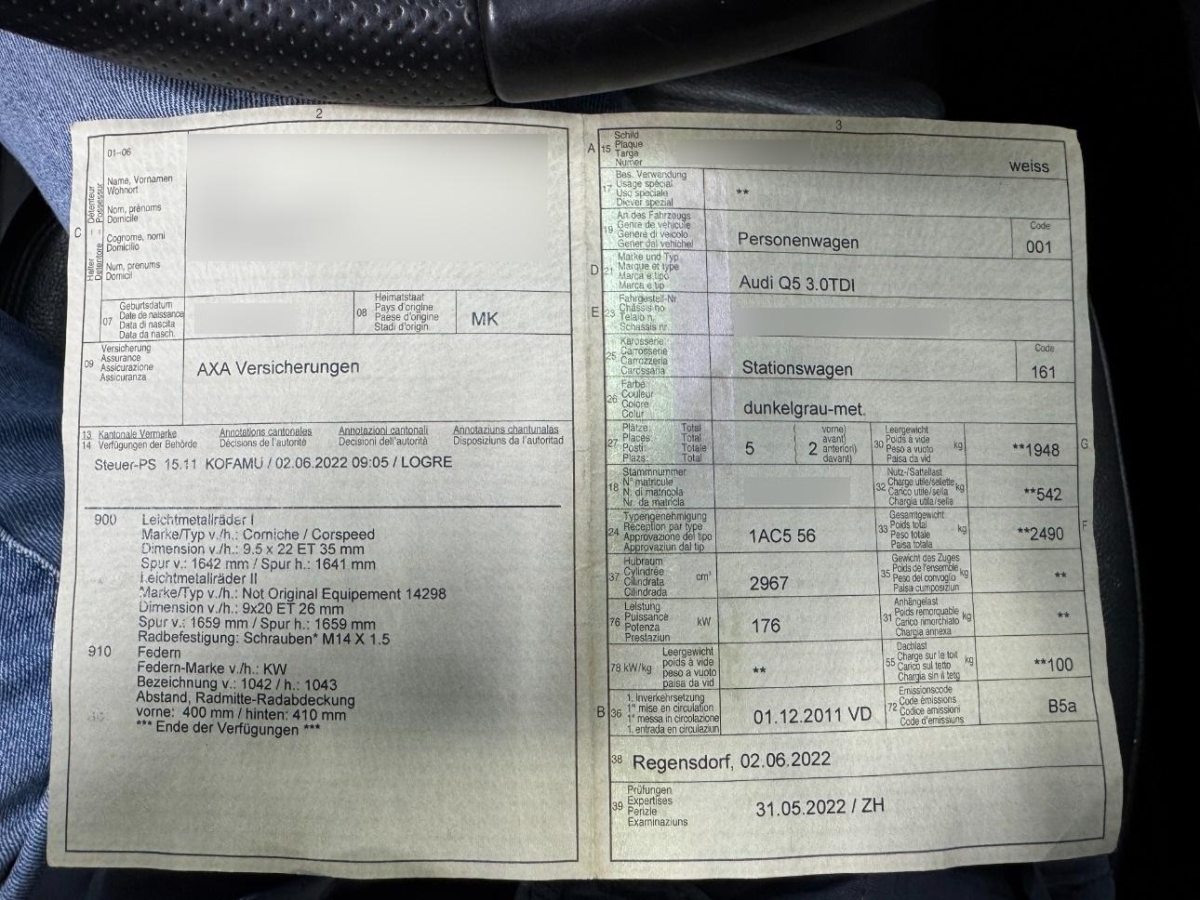 Information:Das Fahrzeug wird mit den abgebildeten Räder verkauft. Das Fahrzeug ist tiefergelegt, Federn-Marke KV (Eintrag Fahrzeugausweis vorhanden). Das Fahrzeug ist foliert (Originallack Daytonagrau Perleffekt)Die (vom Fahrzeugexperten) ermittelten Reparaturkosten beziehen sich auf das versicherte Ereignis. Allfällige zusätzliche, nicht versicherte Schäden/Vorschäden, sind in den Reparaturkosten nicht enthalten. Die deklarierten Ausstattungsmerkmale können von der effektiven Ausstattung abweichen.AchtungBei einem Hochvoltsystem - Spannungsfreiheit prüfen. Sicherheitshinweise und Betriebsanleitungen des Herstellers konsultieren und befolgen.