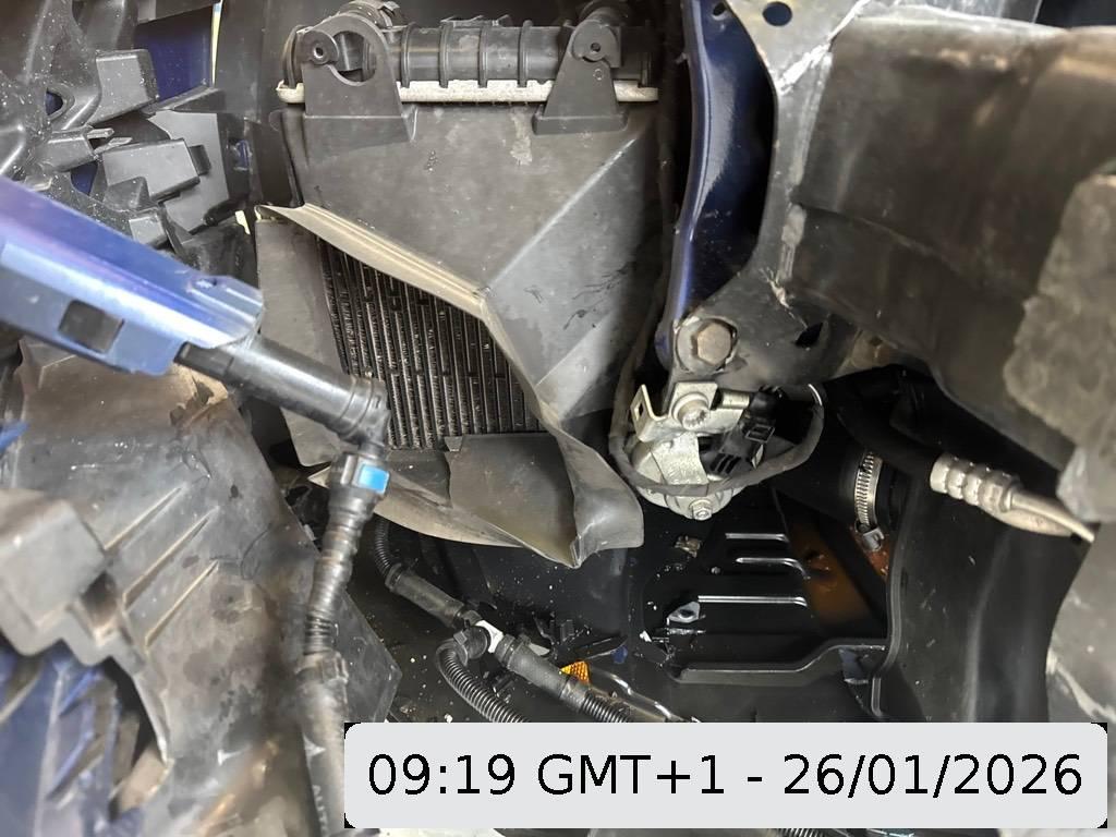Airbag ausgelöst, Armaturenbrett, Front, Front links, Front rechts, Frontblech, Frontscheibe, Gurtstraffer ausgelöst, Kabelstrang, Klimakühler, Kotflügel links, Kotflügel rechts, Kühler, Kühlgitter, Ladeluftkühler, Längsträger vorne links, Längsträger vorne rechts, Motor, Motorhaube, Motorträger, Querträger, Scheinwerfer links, Scheinwerfer rechts, Seite links, Seite rechts, Stosstange vorne, Türe vorne links, Türe vorne rechts