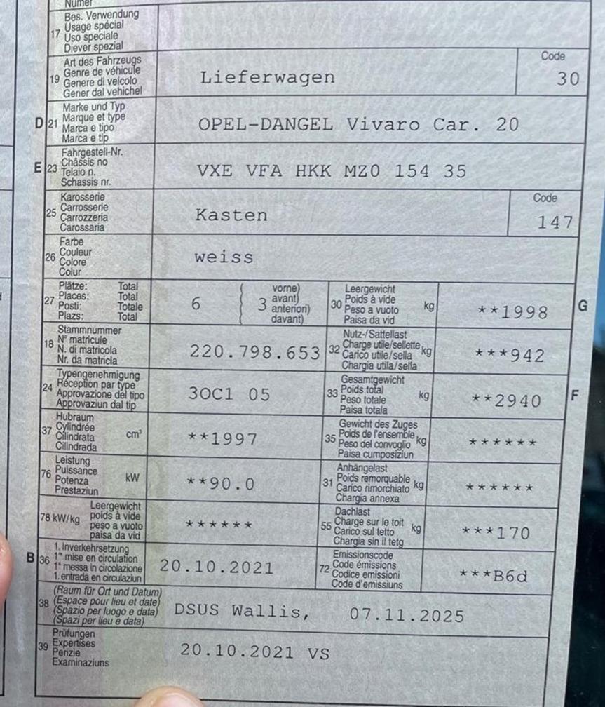 OPEL-DANGEL Vivaro Car. 20 4x4