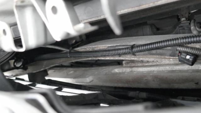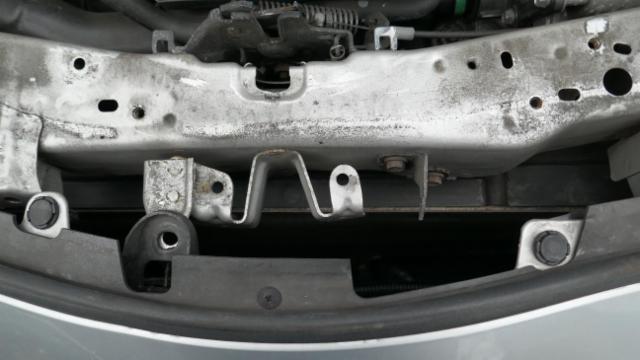 Frontalaufprall: Stossstange vorne, Motorhaube, Scheinwerfer vorne rechts, Kotflügel vorne rechts, Verstärkung, Absorber, Frontplatte, Kühler, Kondensator, eingedrückt, verformt, zerkratzt, gebrochen, gespannt, links. Gefahr an Kotflügelwange vorne rechts und Längsträger oben rechts.