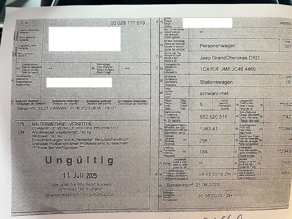 Keine technische Prüfung (Werkstatttest) vorgenommenDiverse Schäden an Karosserie/Lack.Fahrzeug ab Platz, ohne Garantie und Aufbereitung.DPF/FAP Filter nicht kontrolliertKeine Gewähr auf die Angaben der Sonder- und Serienausstattung / keine mechanische Prüfung. Fahrzeug wurde unzerlegt expertisiert / keine Haftung für allfällige, nach Demontage bekanntwerdenden Mängel. Fahrzeugbereifung und Ausstattung gemäss Fotos / Fahrzeugkauf auf eigenes Risiko ab Platz ohne Nachwährschaft.- Div. Kratzer und Dellen am gesamten Fahrzeug.- Div. Kratzer an allen vier Felgen.- Div. Kratzer- Motorhaube bei Scheinwerfer etwas eingedrückt- Motorlampe leuchtet- Letzter Service am 19.03.2025 bei 75'325 km