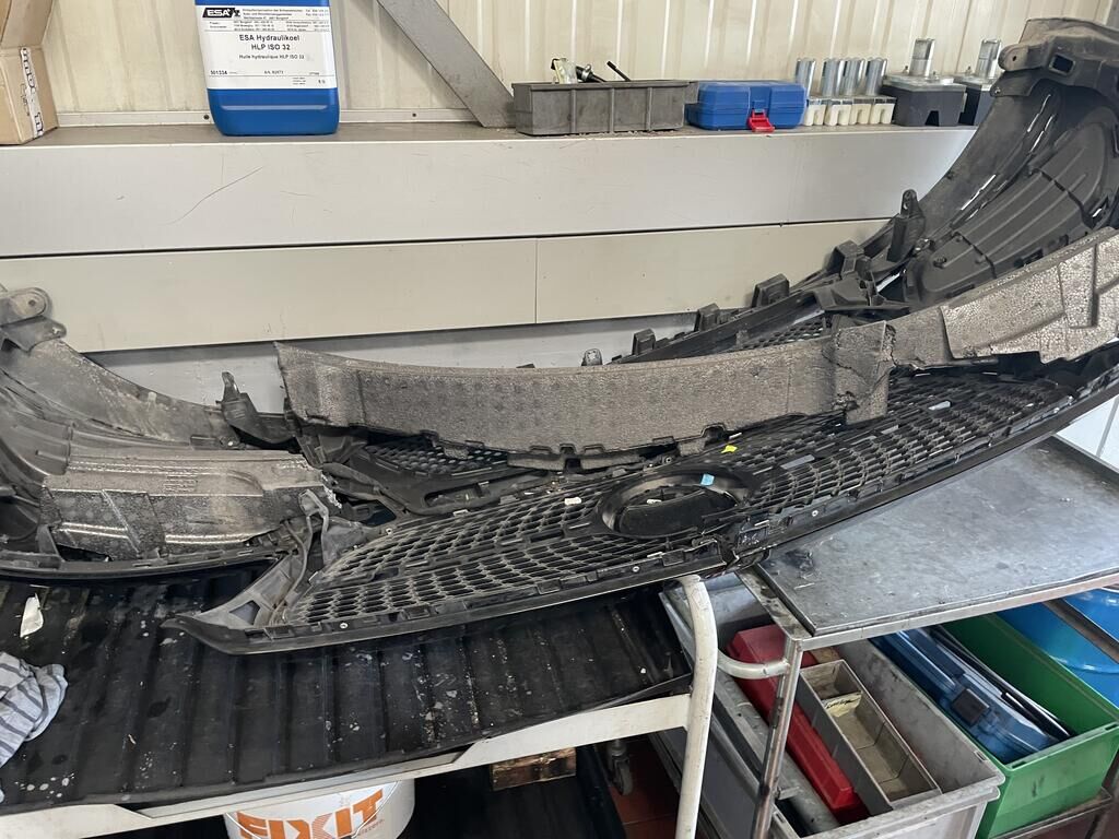 Motorhaube und Scharniere def. / Kotflügel li und re def. / Scheinwerfer li und re def. / Schlossträger def. / Stossf mit Anbauteilen def. / Totwinkelsensor def. / Kühlergrill def. / Alle Kühler def. / A-Säule re def. / Halter vom Frontradar def. (Radar= Risoko) / Aufzählung nicht abschliessend. Motor Getriebe Vorderachse Hinterachse Airbags ausgelöst: 0 unbekannt ( Abfallcode 16.01.04ak )