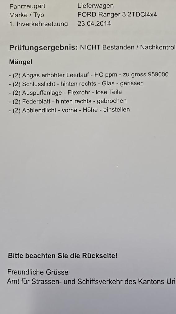 - Motor wurde mit 209251km am 02.2022 ersetzt (Original Ford Ersatzteil) - MFK Mängel bitte beachten: DPF defekt; Schlusslicht links; Aupsuffanlage Felxrohr lose; Federblatt hinhten rechts gebrochen; Lichteinstellung