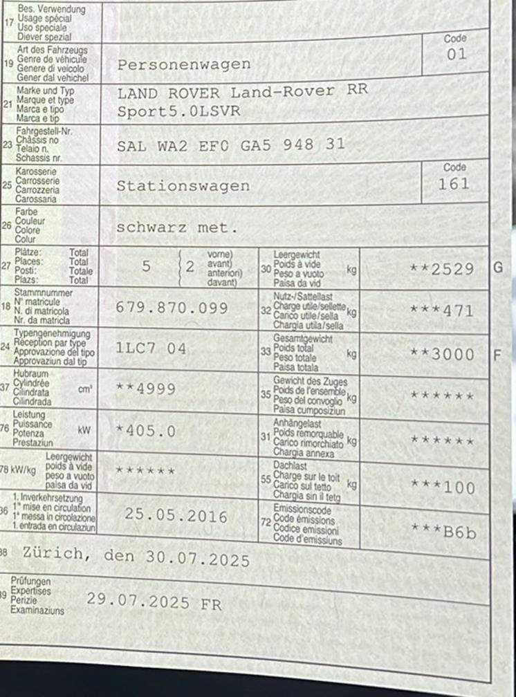 Gebrauchsspuren Karosserie Aussen sowie auch von Innen siehe Fotos Service Historie siehe Anlage Fahrzeugausstattung siehe Anlage Garantie Dokumente siehe Anlage Car Vertical siehe Anlage Bereifung: - Neuwertige Winterreifen Alle bekannten und typischen SVR-Themen wurden bereits professionell erledigt, darunter unter anderem: - Kühlmittelleitungen ersetzt - Ganghebel ersetzt - Weitreichende Aufbereitung (Lack- und Innenaufbereitung) im August 2025 gemacht - Weitere bekannte Schwachstellen bereits behoben Der SVR überzeugt mit seiner einzigartigen Kombination aus V8-Performance, Luxus und Alltagstauglichkeit. Am Fahrzeug wurde keine vollumfängliche Prüfung der mechanischen Teile und der Carrosserie durchgeführt! Das Risiko liegt somit vollumfänglich beim Käufer. Um Missverständnisse zu vermeiden kann das Fahrzeug auf Voranmeldung besichtigt & getestet werden. Wird davon bewusst kein Gebrauch gemacht, liegt die Verantwortung beim Käufer. Nach Zuschlag, keine Nachverhandlungen möglich. Ab Platz ohne Garantie, Wandelung und Minderung werden wegbedungen