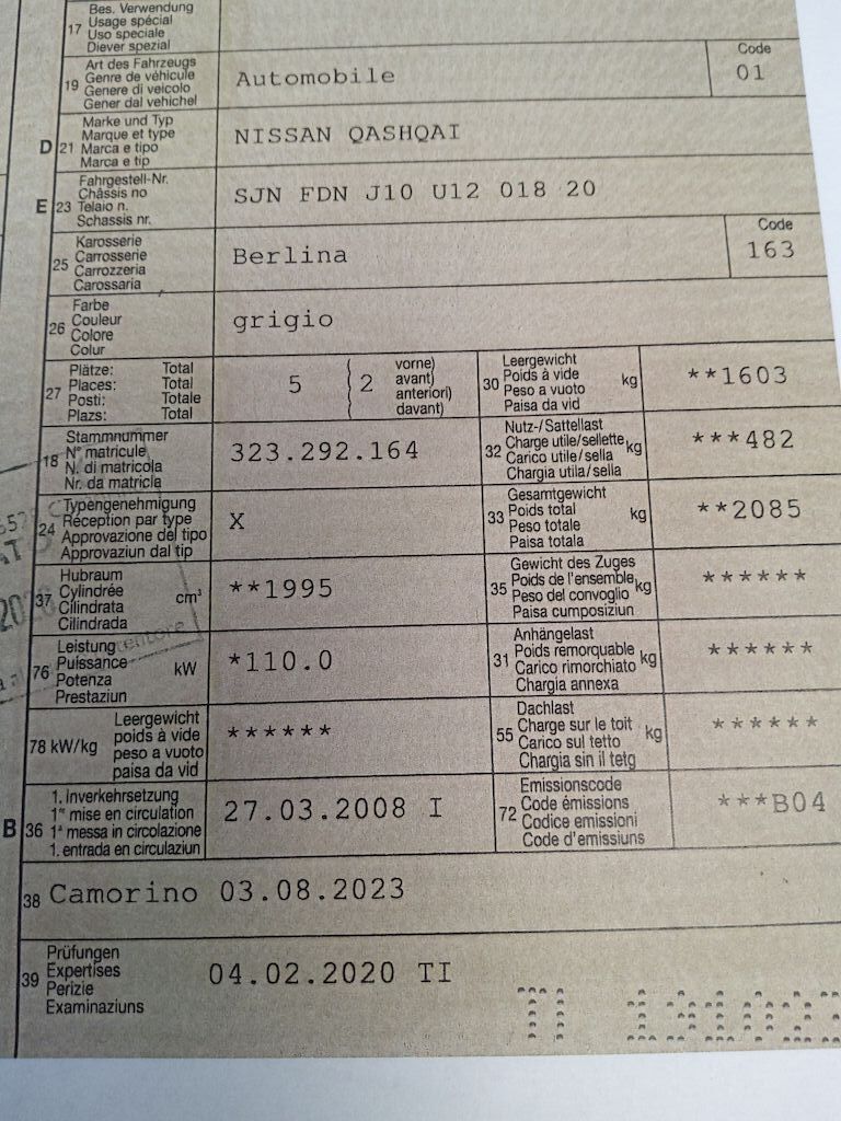 Non è stata effettuata alcuna ispezione tecnica (prova in officina) Le spie di avvertimento si accendono durante il funzionamento Filtro FAP da sostituire Vari danni alla carrozzeria/verniciatura Danno paraurti e parafango posteriore DX Veicolo leggermente grandinato Motor Getriebe Vorderachse Hinterachse Airbags ausgelöst: 0 Nein ( Abfallcode 16.01.04ak )