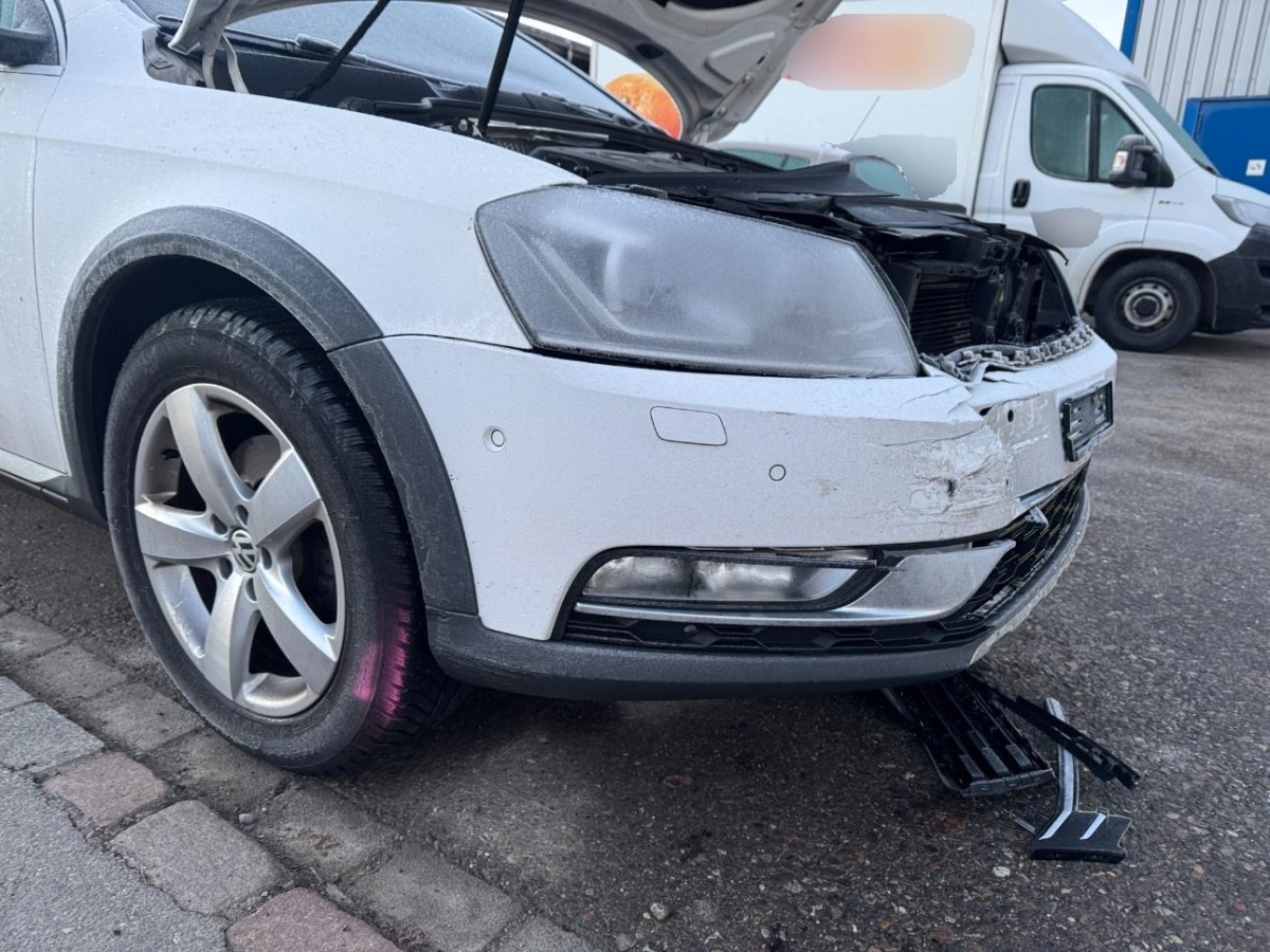 Airbag ausgelöst, Diverse Anbauteile, Front, Gurtstraffer ausgelöst, Kühler, Kühlgitter, Ladeluftkühler, Motorhaube, Scheinwerfer rechts, Schlossträger, Stosstange vorne