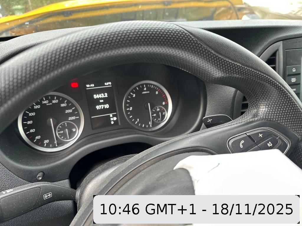 Assist: Pannenmanagement, 12V Steckdose, Assist: Seitenwindassistent, Wegfahrsperre elektronisch, Assist: Wartungsintervallanzeige ASSYST, Emissionsklasse Euro 6d-TEMP N1 GR.III/N2, Abschliessbares Handschuhfach, Polster: Polster Stoff Caluma schwarz, Airbag: Airbag Fahrerseite, Getriebe: Achsübersetzung i = 2,733, Generatormanagement, Sitze: Fahrersitz Manuell in 6 Richtungen einstellbar für hohen Sitzkomfort., Assist: Reifendrucküberwachung an VA u. HA, drahtlos, Befestigungspunkte im Dachrahmen, Airbag: Airbag Beifahrer, Multi-Tasten Funkfernbedienung, Elektronisches Stabilitäts-Programm (ESP), Assist: Tempomat, Aussentemperaturanzeige, Zuheizer elektrisch, Getriebe: 7G-TRONIC PLUS, Assist: Warnlampe für Wischwasserfüllstand, Elektrik für Anhängersteckdose, Pufferbatterie für Startvorgang, Gewichtsvariante 3.050 kg, Antriebsschlupfregelung (ASR), Türen: Schiebetür rechts, Wärmedämmendes Glas rundum, Sitze: Beifahrersitz verstellbar Manuell in 4 Richtungen einstellbar für hohen Sitzkomfort., Verbandstasche, Licht: Scheinwerfer Halogen, Media: 2-Wege-Lautsprecher vorn, Warndreieck, Räder: Stahlräder 6,5Jx16, Antiblockiersystem (ABS), Gurtwarneinrichtung für Beifahrersitz, Media: Kombiinstrument mit Pixel-Matrix-Display, Räder: Bereifung 205/65 R16, Media: Radiogeneration 2, Bereifung ohne Vorgabe Fabrikat, Zentralverriegelung mit Funk-Fernbedienung, Media: Digitaler Radioempfang (DAB/DAB+), Anhängelast 2500 kg, Licht: Fahrlichtassistent (automatisches Fahrlicht), Trennwand durchgehend, Garantie: Garantie: 2 Jahre, Assist: Berganfahrhilfe, Assist: Mercedes-Benz Notrufsystem, Feststellbremse (Fusspedal), Regensensor, Fahrwerk: Basisfahrwerk, Dekor:Innenverkleidung Laderaum, seitlich, Generator 14 V / 185 A, Media: Kommunikationsmodul (LTE) für digitale Dienste, Abschleppöse vorne/hinten einschraubbar, Lenkrad: Lenkrad in Neigung und Höhe verstellbar, Licht: Adaptives Bremslicht, Abgasreinigung SCR Generation 3, Licht: 3. Bremsleuchte, Fahrwerk: Elektrische Lenkung, Drehzahlmesser elektronisch, Getriebe: Partikelfilter und Oxydationskatalysator, Türen: Heckklappe, Sommerreifen, Assist: Wartungsintervall 40.000 km, Fahrwerk: Scheibenbremse an VA und HA, ECO Start-Stopp-Funktion, Assist: ATTENTION ASSIST, Licht: Leuchtweitenregulierung, Lenkrad: Multifunktionslenkrad mit Reiserechner, Media: Audio 10 Mit dem Audio 10 können Sie viel mehr als Radio hören – zum Beispiel über die Freisprechfunktion telefonieren oder Musik von einem mobilen Endgerät abspielen. Dazu verfügt das 1-DIN-Gerät über eine Bluetooth® Schnittstelle und einen USB-C-Anschluss mit Ladefunktion., Zwei Cupholder, Komfort Fensterheber elektrisch F/BF, Haupttank 70 Liter, Dieselpartikelfilter, Paket: BlueEFFICIENCY-Paket Das BlueEFFICIENCY Paket verbessert durch verschiedene Effizienzmaßnahmen die Verbrauchswerte und den CO2-Ausstoß. Verbrauchsreduzierende Maßnahmen - effektiv kombiniert., Aussenspiegel heizbar und elektrisch verstellbar, Gurtwarneinrichtung für Fahrersitz, Lackierung: Uni-Lackierung, Vliesbatterie 12 V/92 Ah