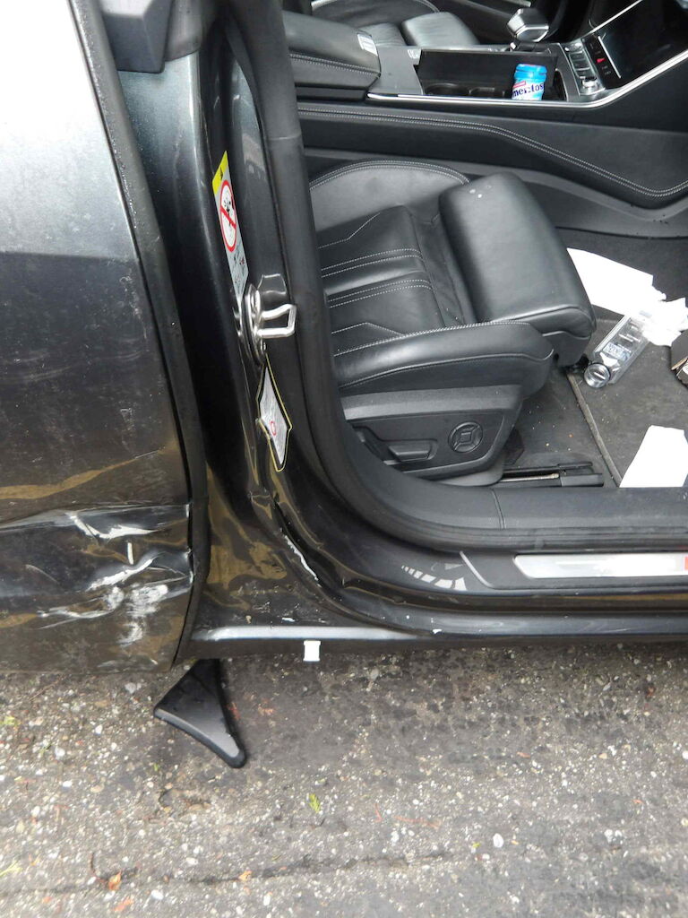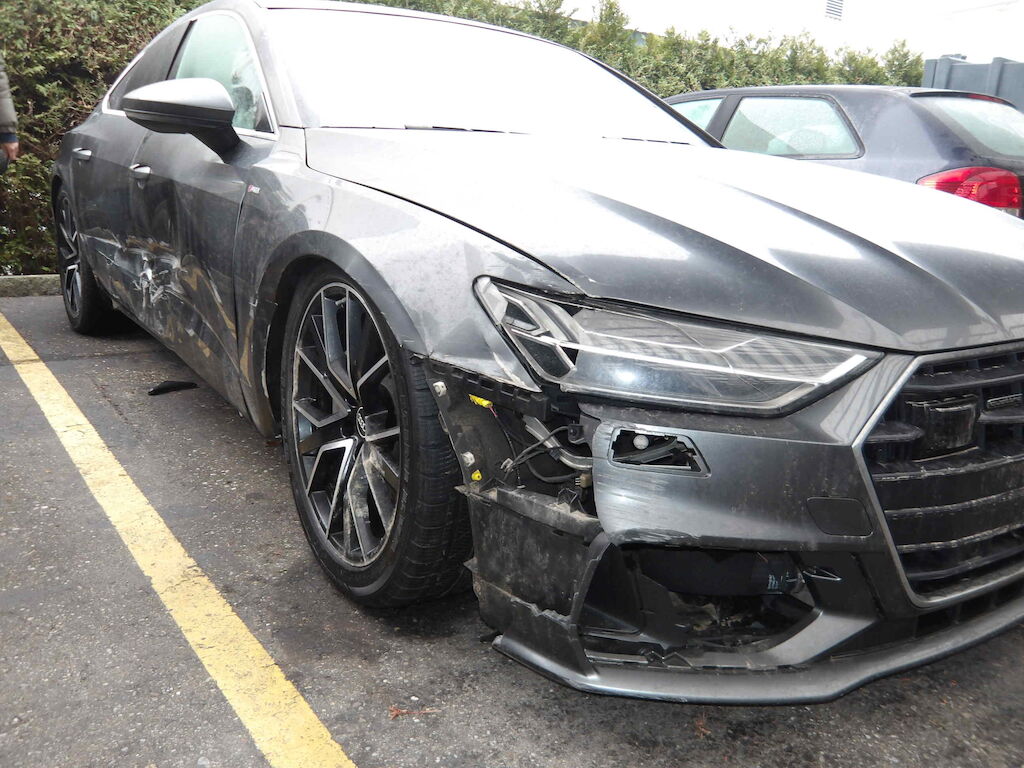 Rechte Seite beschädigt: Stossstange jvo. + hi.-,Scheinwerfer-,Motorhaube-,Kotflügel-,beide Türen-,B-Säule-,Seitenwand Schiefstand Rad VR - Vorderachse und Felge VR beschädigt Motor Getriebe Vorderachse Hinterachse Airbags ausgelöst: 0 unbekannt ( Abfallcode 16.01.04ak )