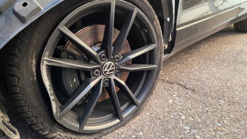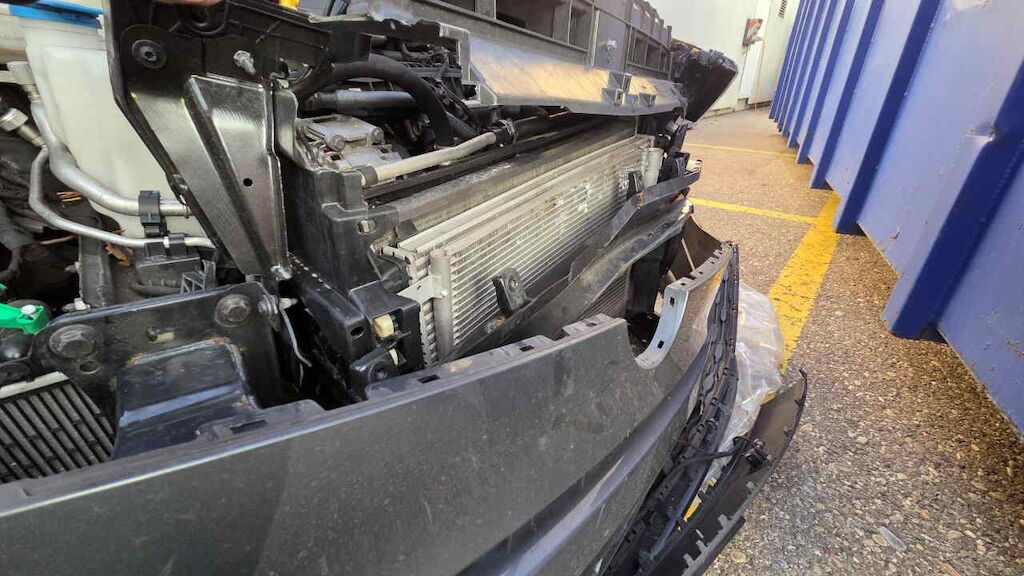 Fahrzeug unzerlegt auf Platz besichtigt Motor und Getriebe konnte nicht geprüfte werden Front nach rechts verschoben Stossfänger mit Träger und Halter, Kühlergrill, Lampen, Scheinwerfer, Motorhaube, Schlossträger, Kühlerpaket, Kotflügel und Türen vl und vr beschädigt Fahrwerk vorne beide Felgen vo, Reifen vl beschädigt Längsträger li und re nach rechts verschoben Motor Getriebe Vorderachse Hinterachse Airbags ausgelöst: 0 unbekannt ( Abfallcode 16.01.04ak )