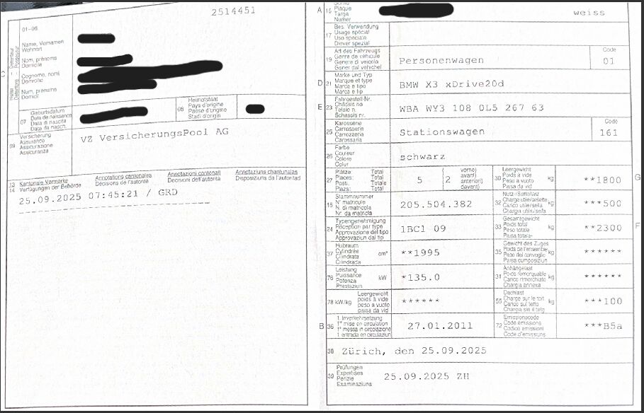 Das Fahrzeug wurde von uns nicht gesehen!Laut angaben wurde folgendes gemacht!!Das Fahrzeug ist ab MFK 25.09.2025 X3 Drive 2od. Steptronic und es wurden zusätzlich folgende Arbeiten durchgeführt:- BMW bei der Diagnose den AGR (Abgasrückführungsmodul zurückgerufen und neu ersetzt original)- Abgasdrucksensor neu ersetzt- Lenkgetriebe wurde neu ersetzt original BMW- Zylinderkopfhaube wegen Ölverlust wurde neu ersetzt für MFK- Vorderachsträger Querlenker/Zugstrebe wurden neu ersetzt- Radlagerersatz, Stange/Strebe Stabilisator Neu- Neue Bremsen Hinten- Neue Stossdämpfer vorneLetzer Service durchgeführt bei KM 234’000