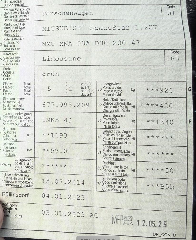 Zum Verkauf steht ein Mitsubishi Space Star aus Kundenbesitz. Das Fahrzeug weist einen Getriebeschaden auf: Der erste Gang ist defekt. Das Fahrzeug ist trotzdem fahrbar, jedoch mit Einschränkungen. Der Verkauf erfolgt ab Platz, ohne Garantie, ohne Gewährleistung und unter Ausschluss jeglicher Sachmängelhaftung, soweit gesetzlich zulässig. Das Fahrzeug wird gekauft wie gesehen und probegefahren. Keine Nachverhandlungen vor Ort oder nach Vertragsabschluss erwünscht. Das Fahrzeug befindet sich aktuell noch im Besitz des Kunden und wird nur bei Einigung verkauft.