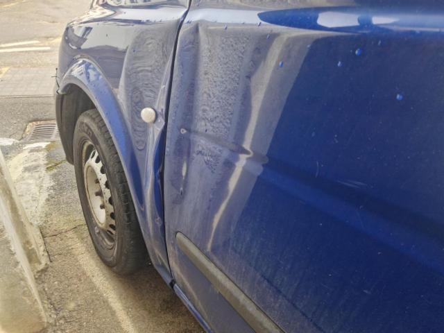 Linke Seite beschädigt. Tür vorne links ist eingedrückt.